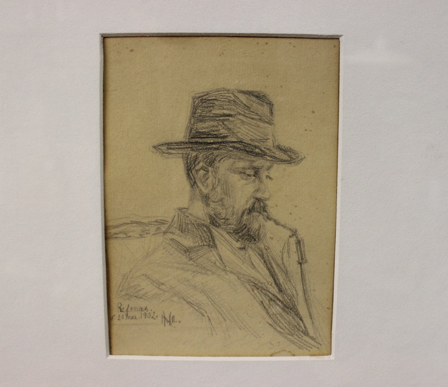 Portræt tegning signeret Refsnæs f. 20 maj 1902, RML.