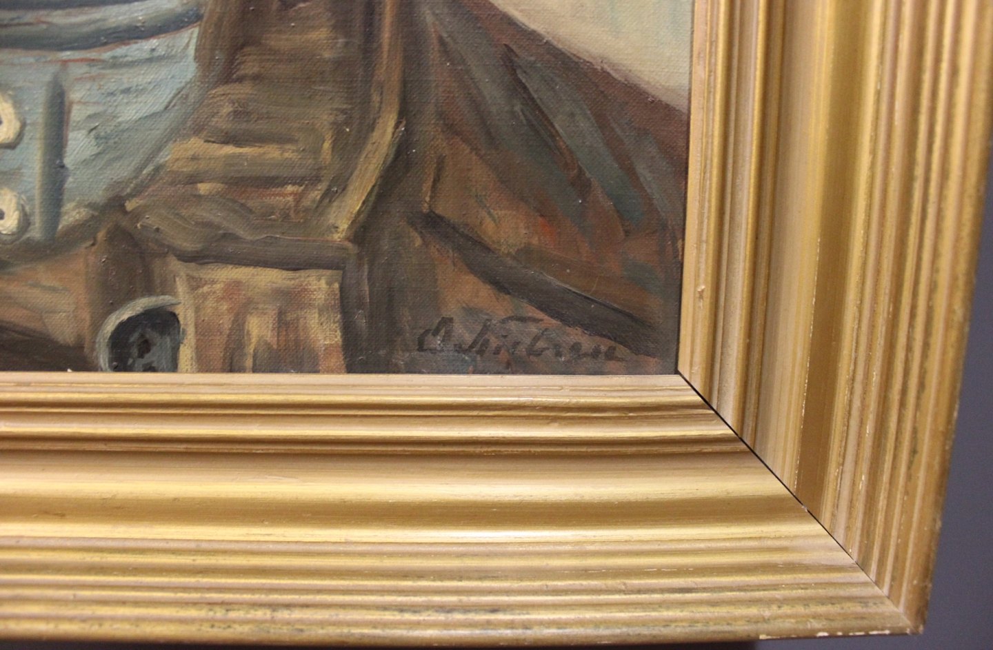 SoldOil painting on canvas, "The Fisherman" unknown signature.
