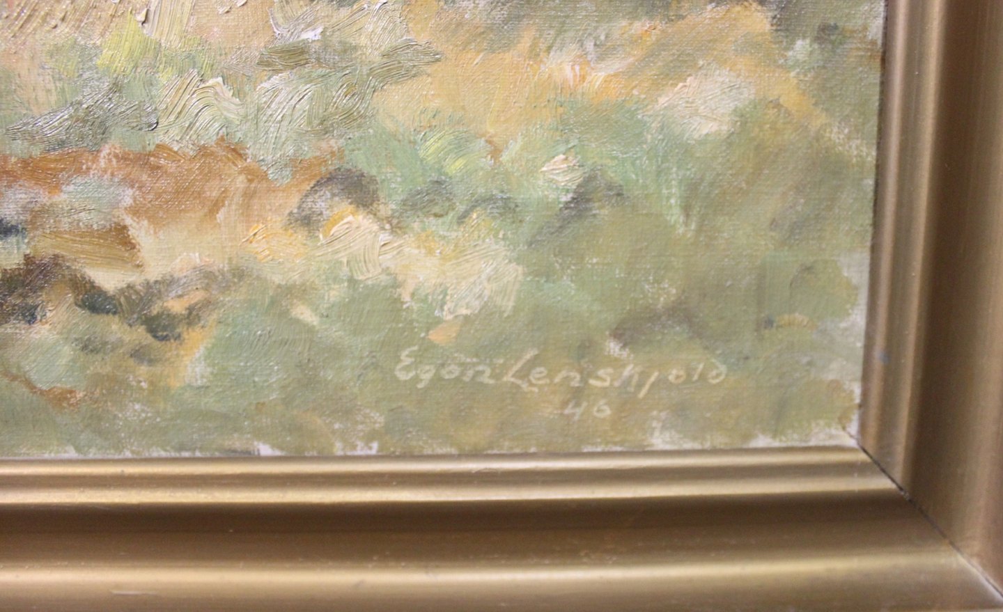 Oil painting on canvas of landscape signed Egon Lenskjold 1946.