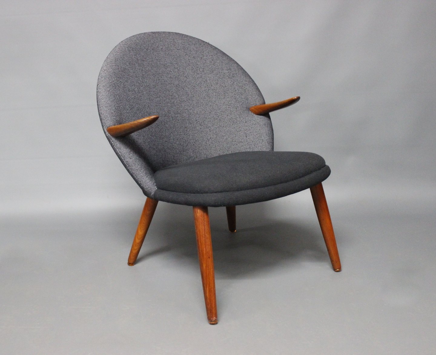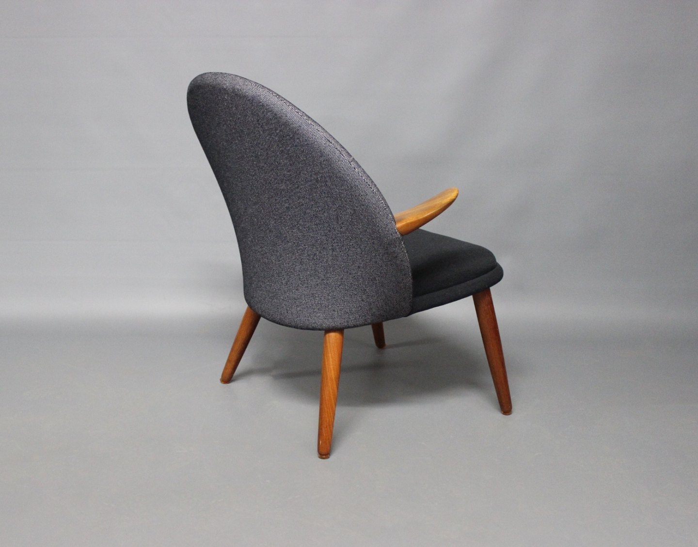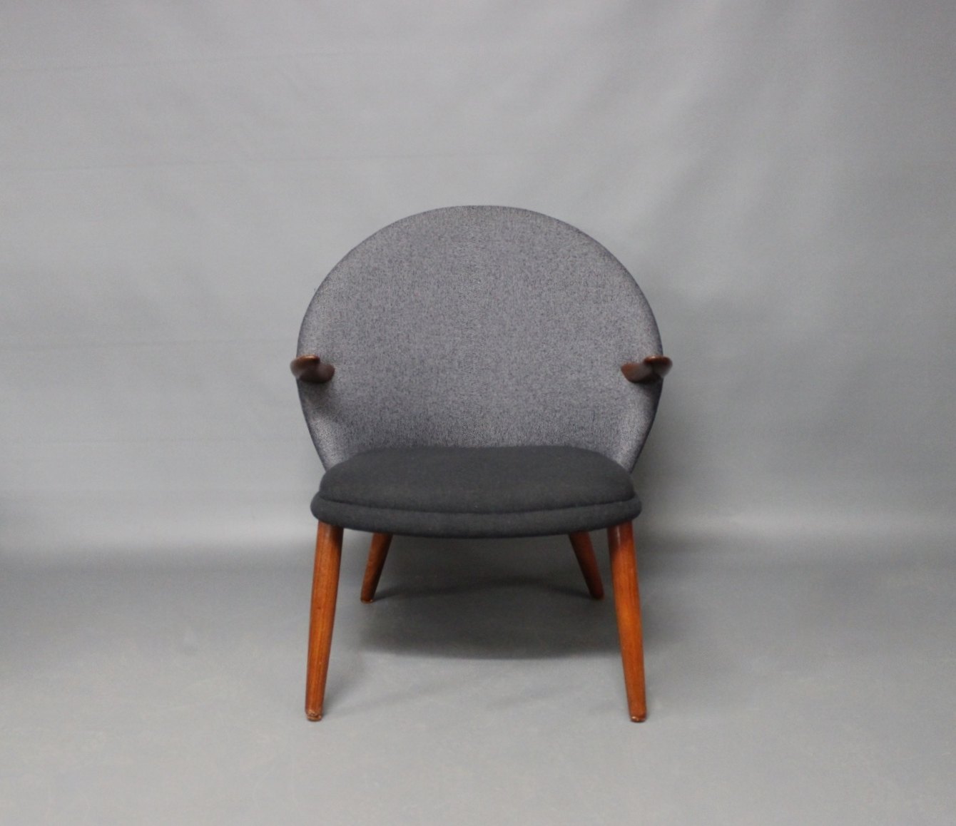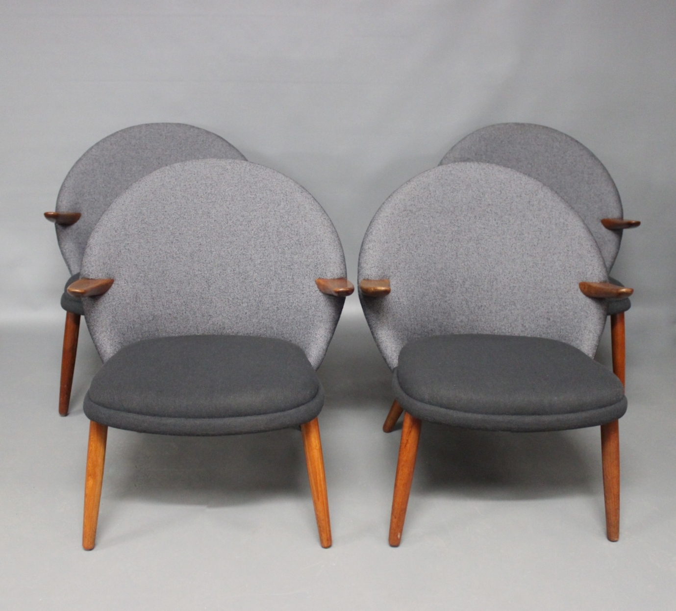 SoldEasy chairs in teak and upholstered in grey Hallingdal wool designed by Kurt Olsen for Glostrup furniture factory in the 1950s. The chairs can be sold separately.
