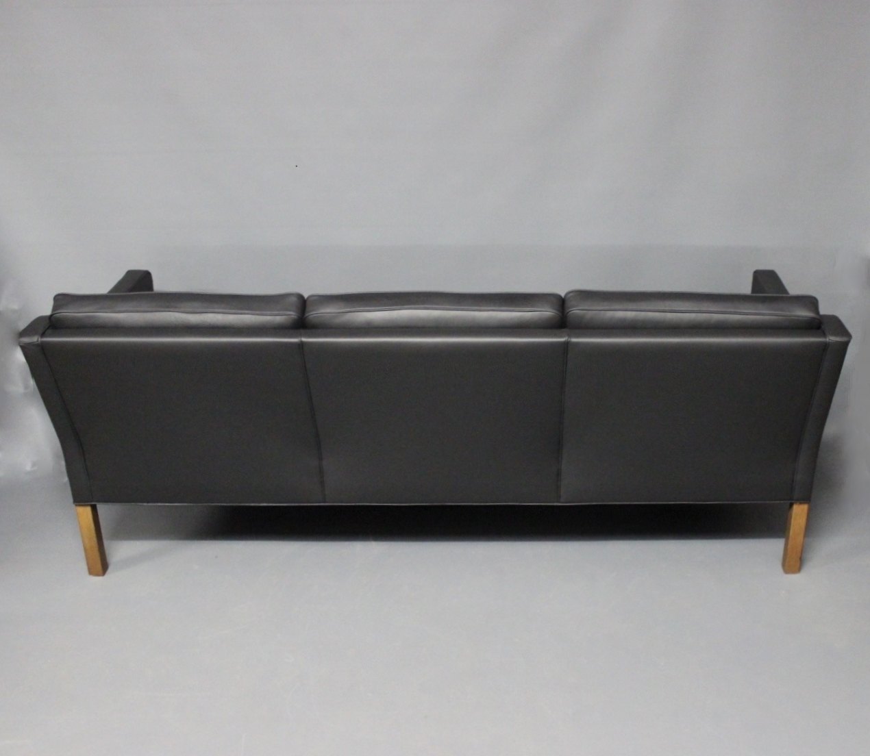 Sold2209 BM 3 seater sofa in Black leather designed by Børge Mogensen in 1963 and manufactured by Fredericia Furniture in the 1970s, newly upholstered in Black Classic leather.