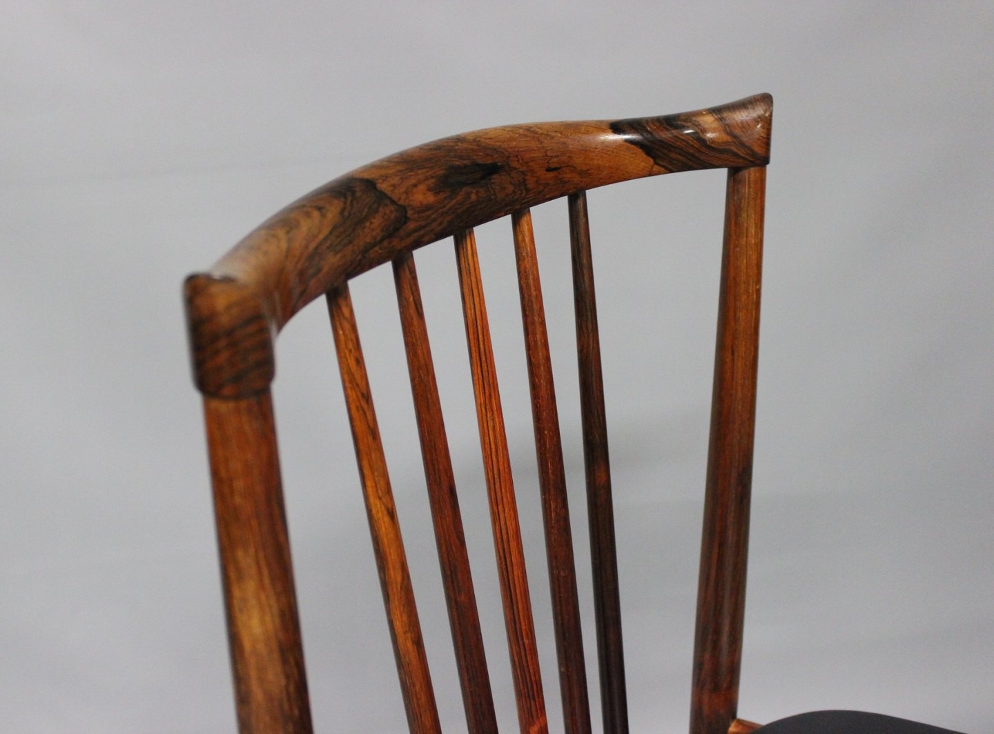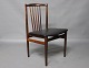 A set of four dining room chairs in rosewood and seat of Classic Black leather designed by Henning Sørensen in 1968.