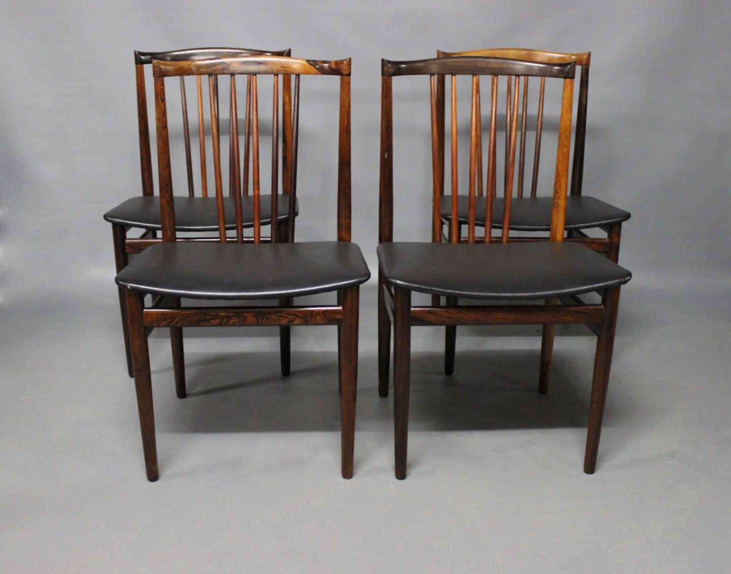 A set of four dining room chairs in rosewood by Henning Sørensen.