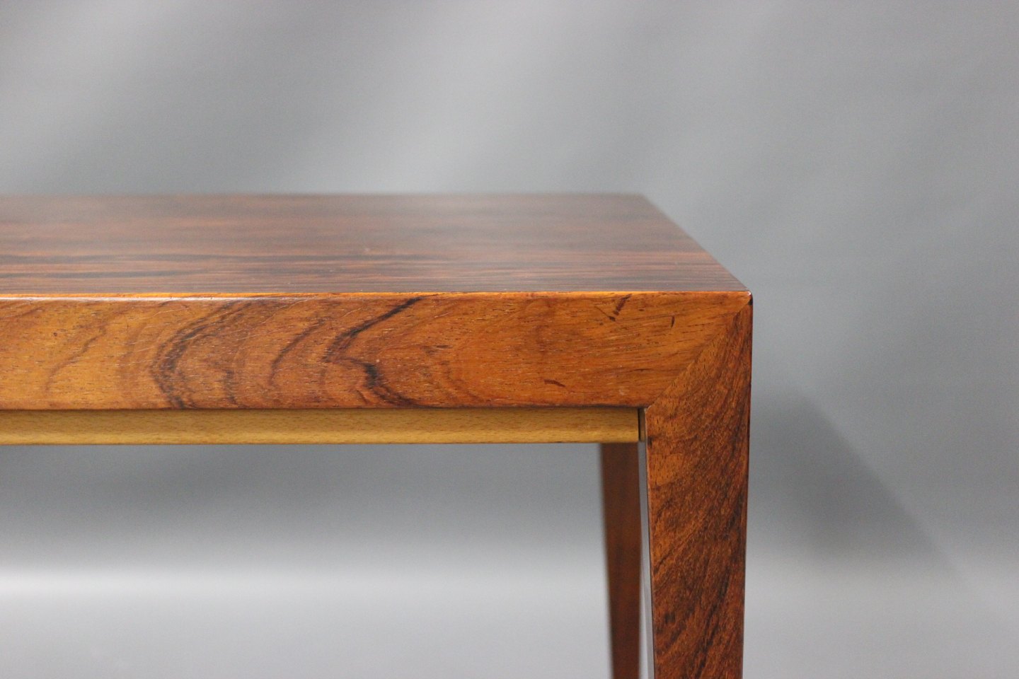 SolgtAflangt sofabord i palisander med udtræk designet af Severin Hansen i 1960erne for Haslev møbelfabrik.