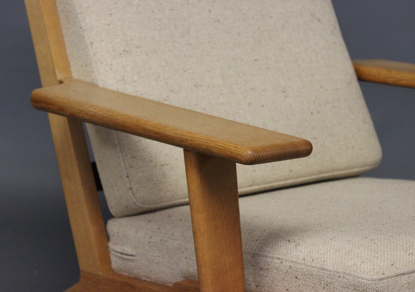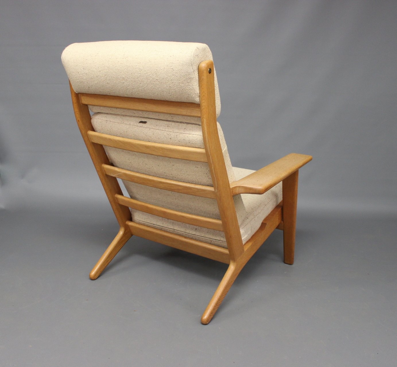 SoldArmchair with high back, model GE290A, designed by Hans J. Wegner in the 1950s and manufactured by GETAMA in the 1960s. The chair is made of oak and cushions in light hallingdal wool.