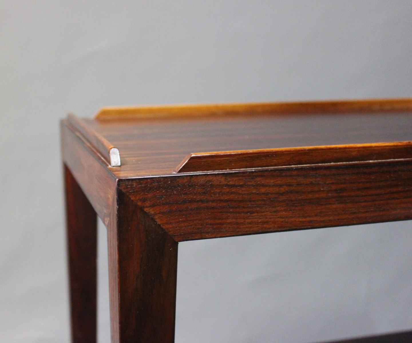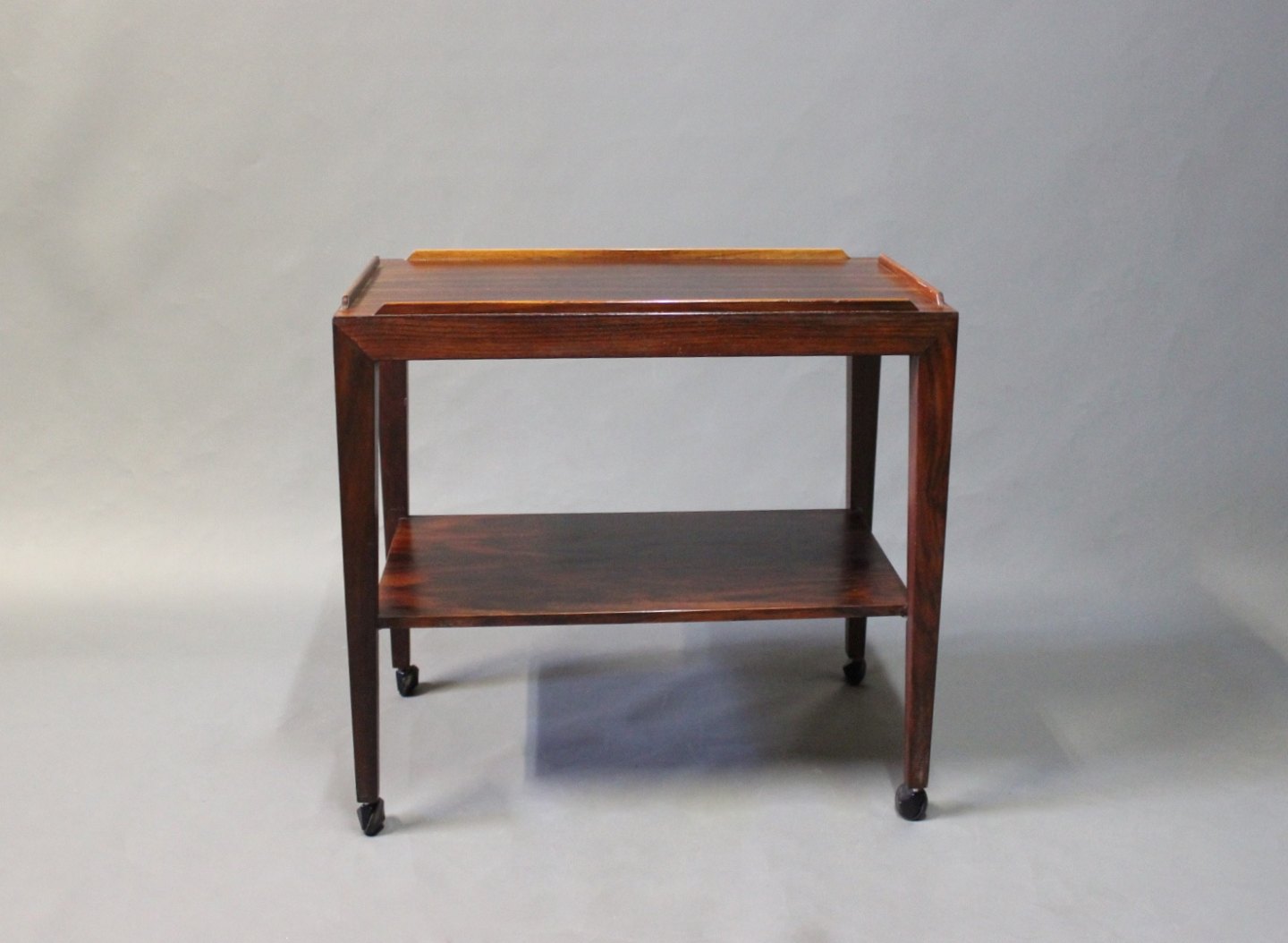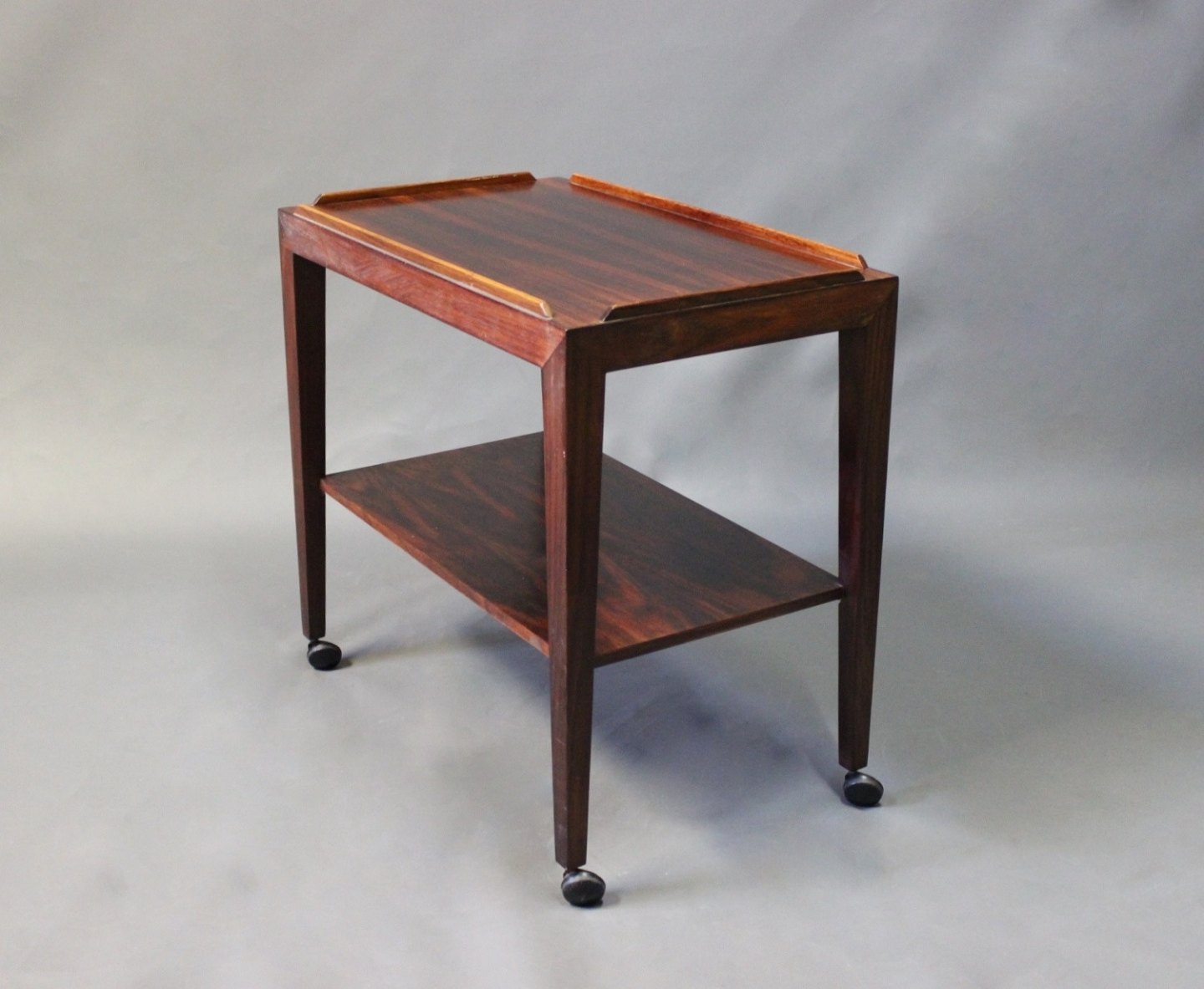 SoldSmall tray table on Wheels in rosewood designed by Severin Hansen for Haslev Furniture Factory in the 1960s.