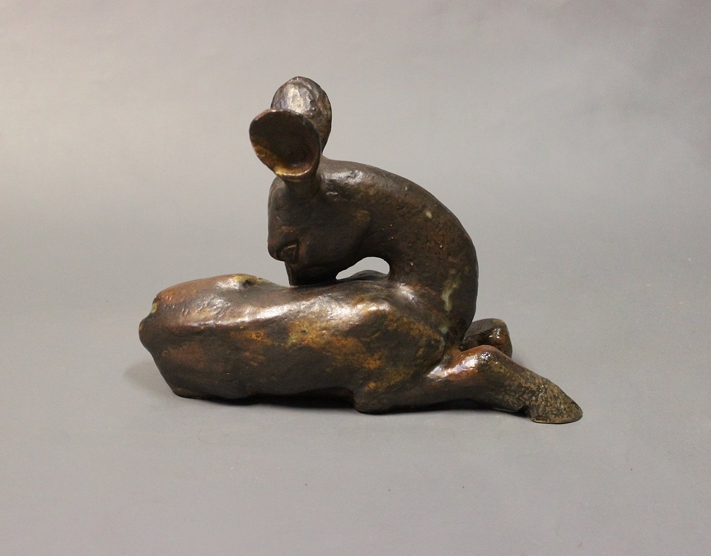 Dark brown ceramic figure, laying deer, no.: 161 by Arne Bang and manufactured at Copenhagens Stoneware Factory in 1929.