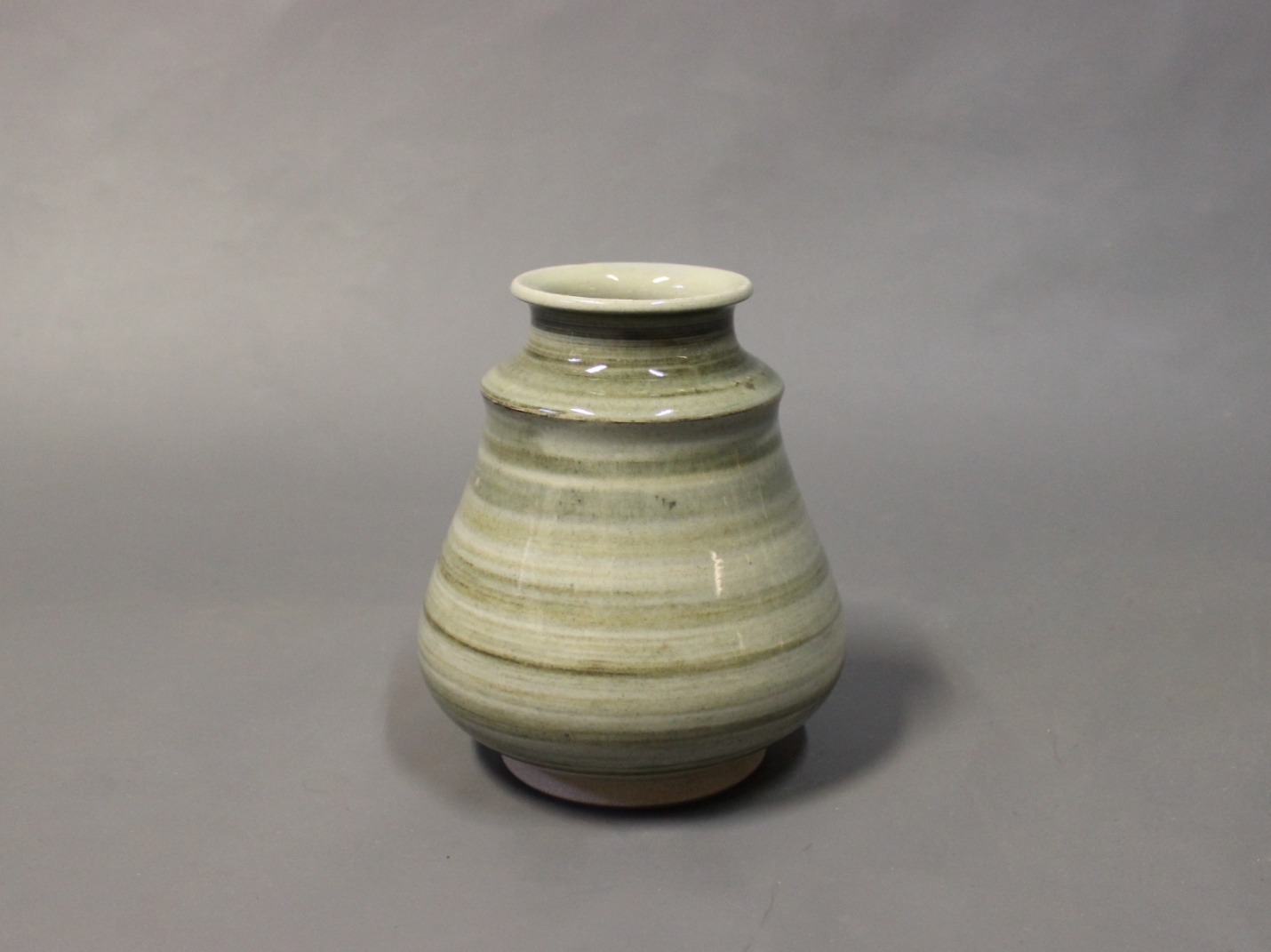 SoldCeramic vase with a green glaze signed Claus Ivarsson by Höganäs from the 1960s.