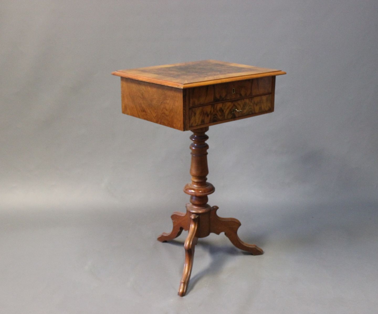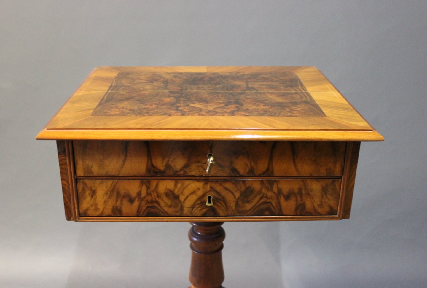 SolgtAntikt sybord i håndpoleret valnød med indlagt træ fra 1860.