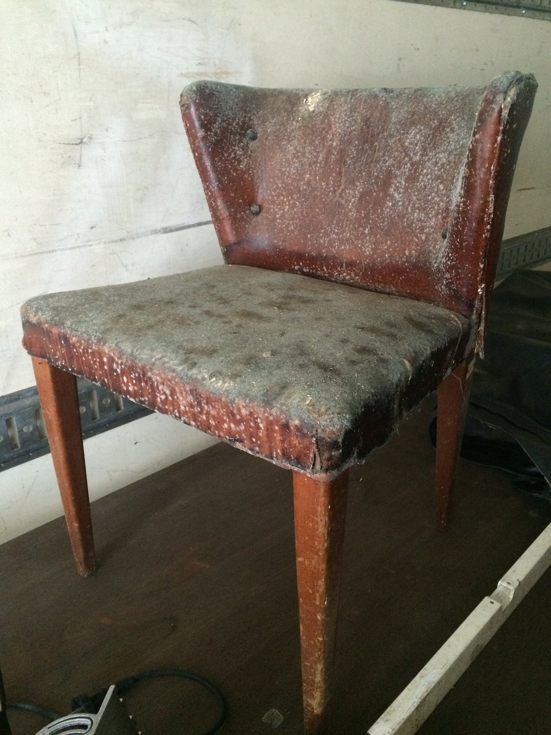 Denne stol af Egon Bro Pedersen har vi ompolstret samt ordnet træværket efter kraftig brandskade.