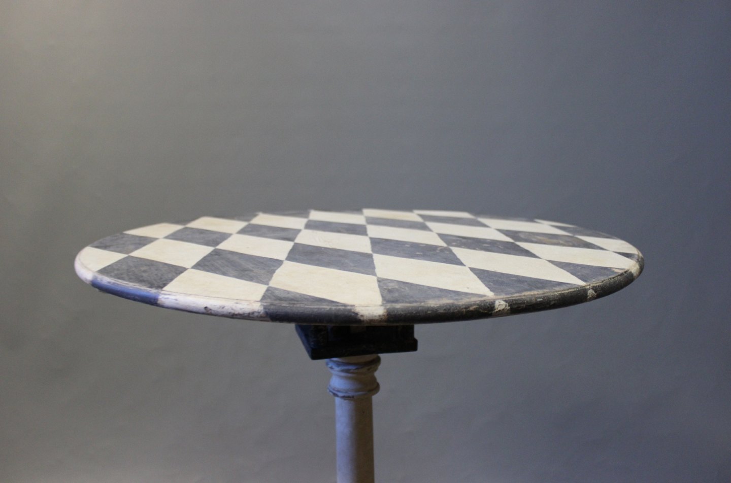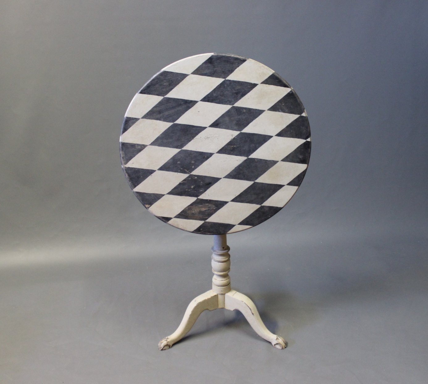SolgtGråmalet lampe-/sidebord med skakternet overflade i stilen Gustaviansk fra omkring år 1840.