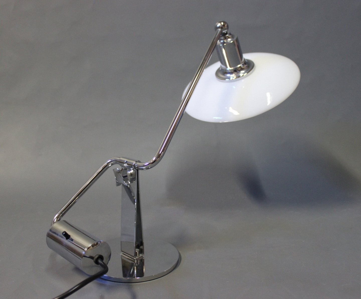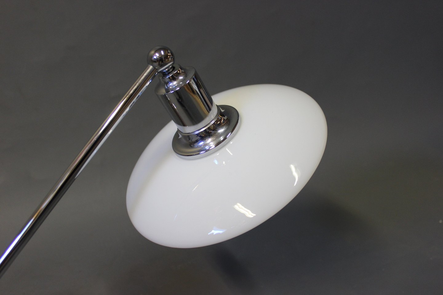SoldPiano lamp PH 2/1 designed by Poul Henningsen in 1943 and manufactured by Louis Poulsen in the 1980s. The Shades are of White opaline glass and the frame of chrome plated metal.