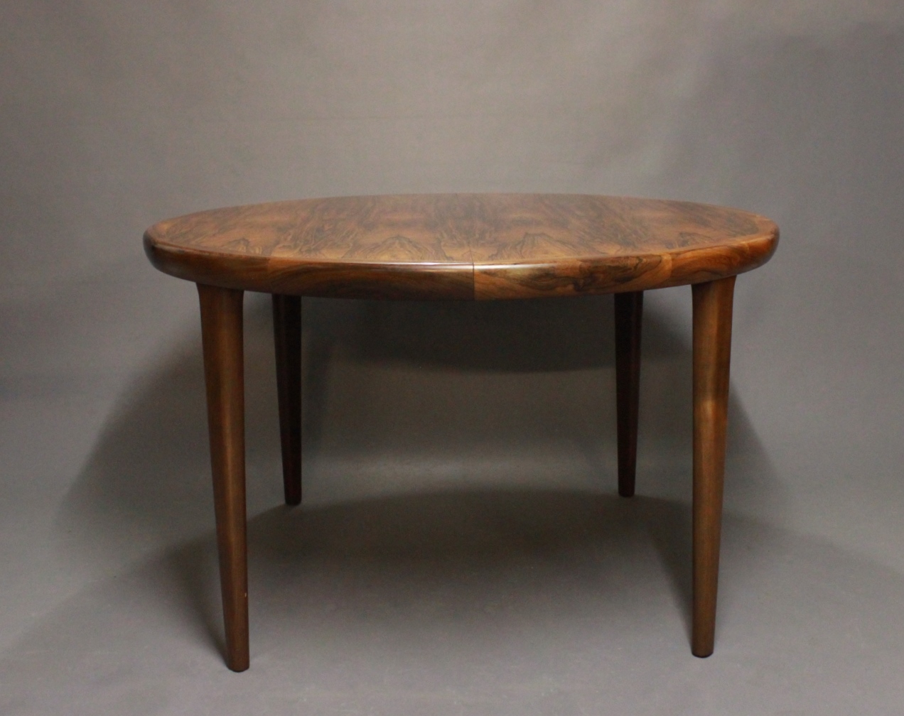 SoldDining room table in rosewood designed by Arne Vodder and from the 1960s. The table has two extenion leaves and they can be colored in to match the table.
