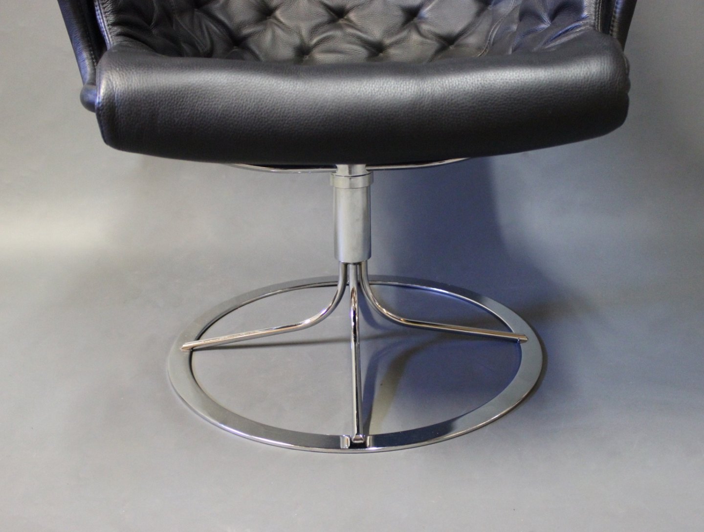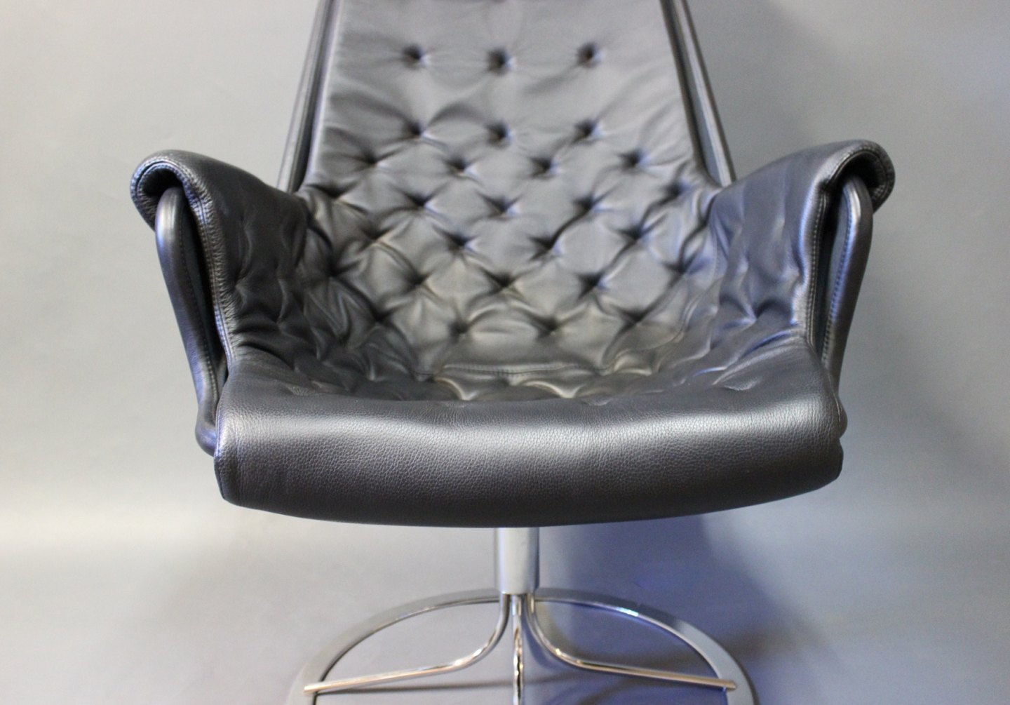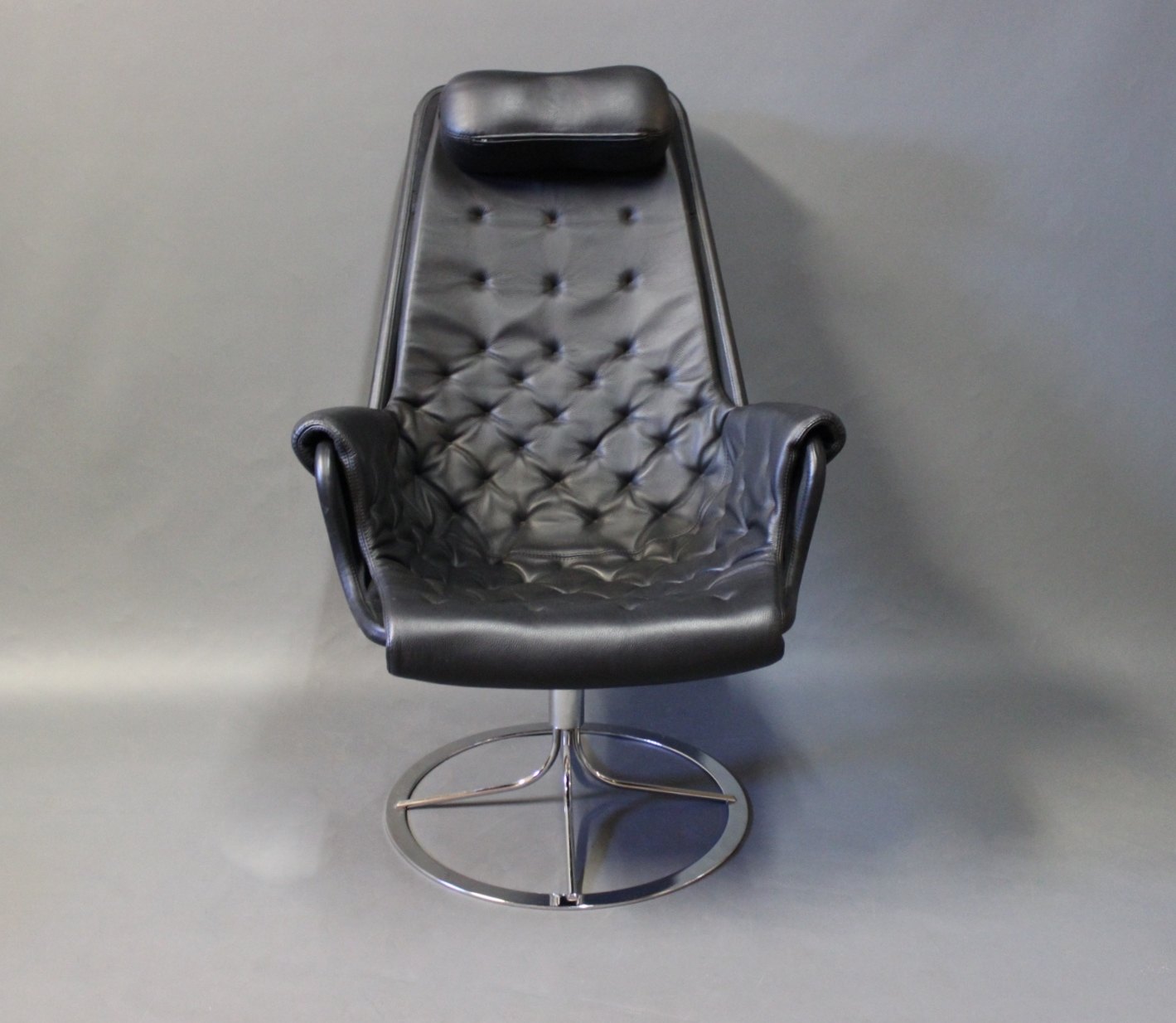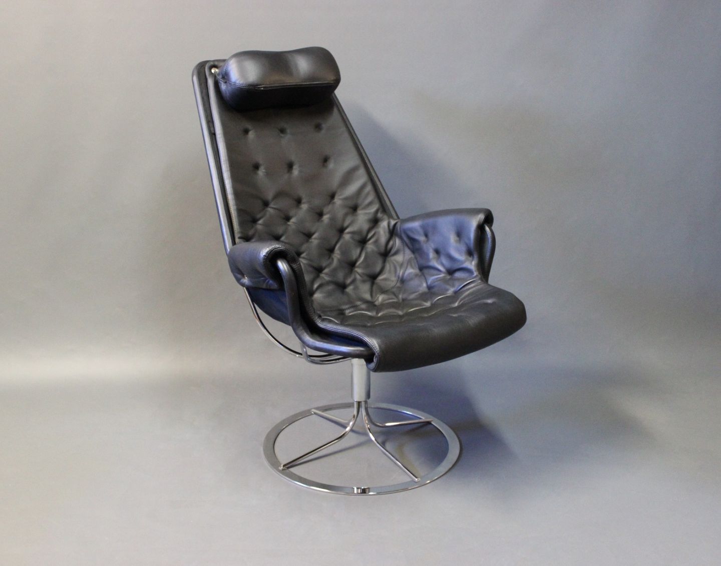 SoldEasy chair, model Jetson 69, in black classic leather designed by Bruno Mathsson in 1966 and manufactured by DUX in the late 1970s/start of the 1980s. The chair has recently been reupholstered.
