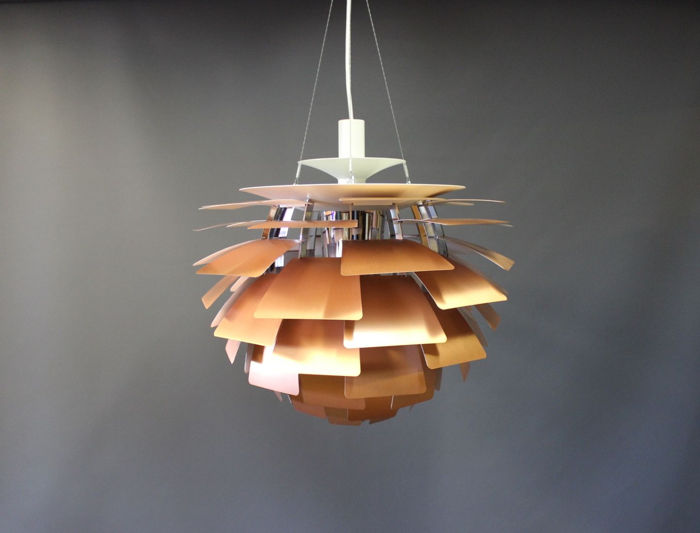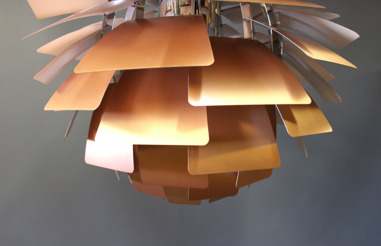 Artichoke, 60, in copper designed by Poul Henningsen in 1958 and manufactured by Louis Poulsen in the 1980s.