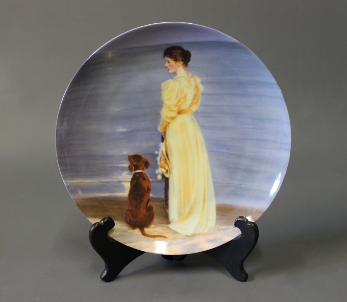 Summer night at Skagen. The artist's wife with the dog at the beach. No.: 5 342 C by P. S. Kroeyer for B&G from 1986. Box and certificate included.