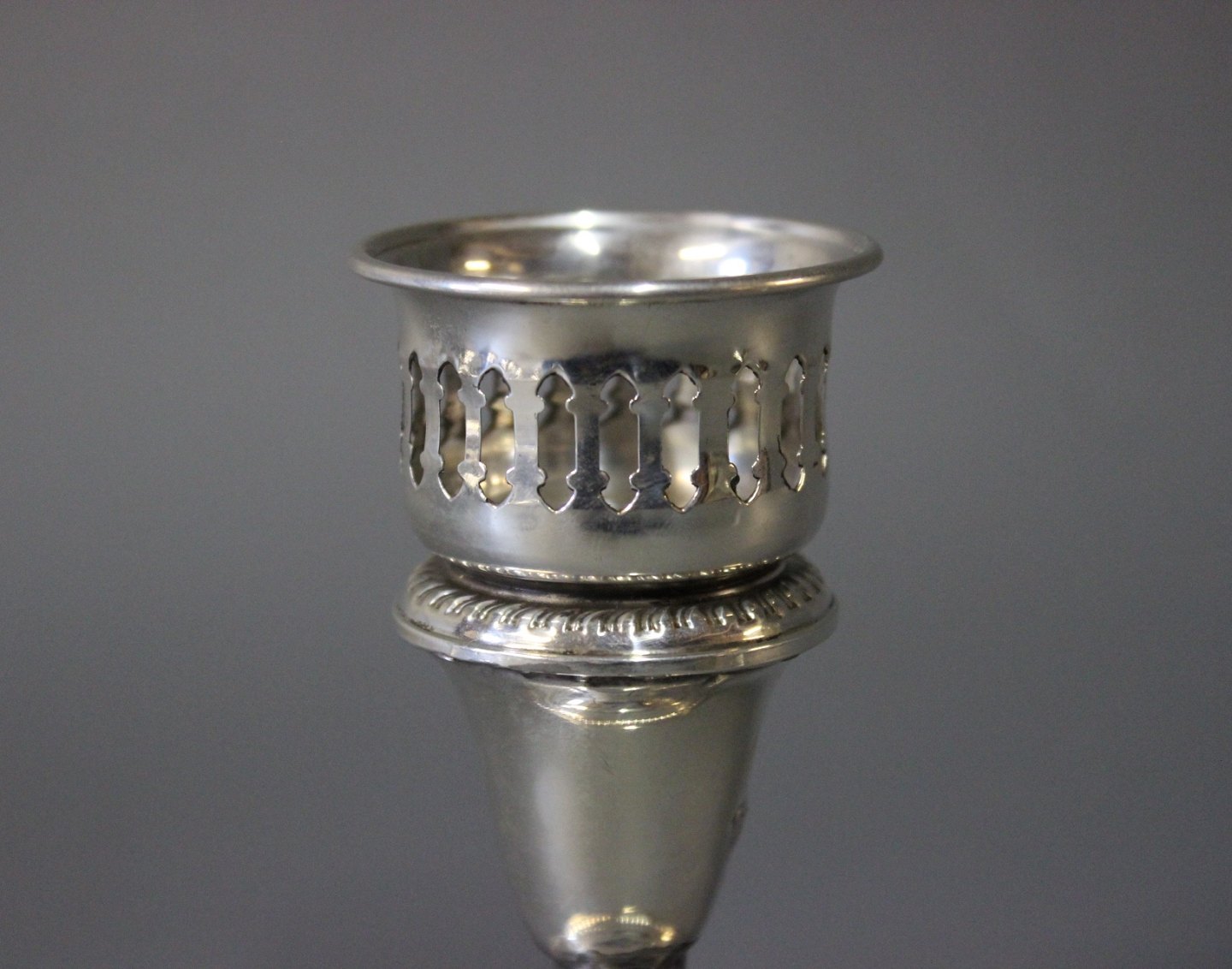 A pair of low simply decorated in sterling silver.