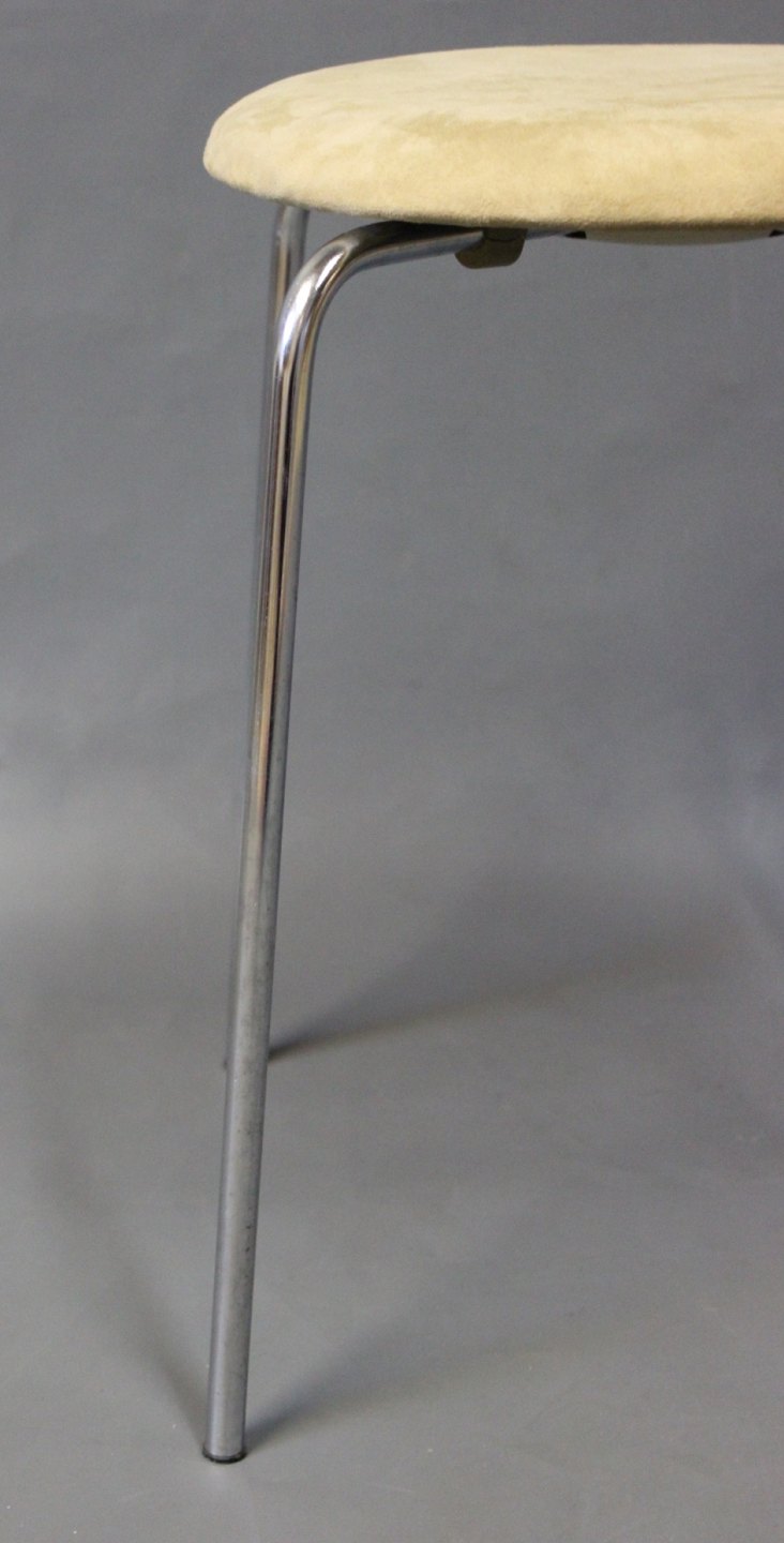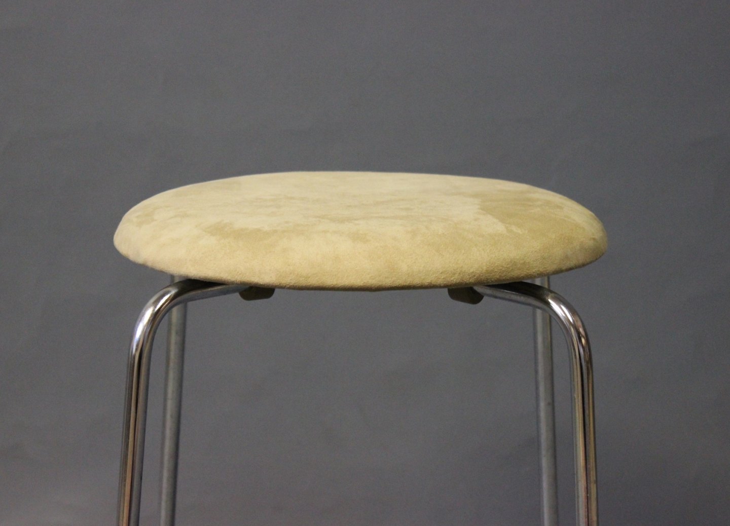 Upholstered in luxurious suede and supported by a solid base, this Dot Stool is not only a functional piece of furniture, but also a work of art in itself. It adds a touch of elegance to any decor and is a must-have for anyone who appreciates Danish design and craftsmanship.