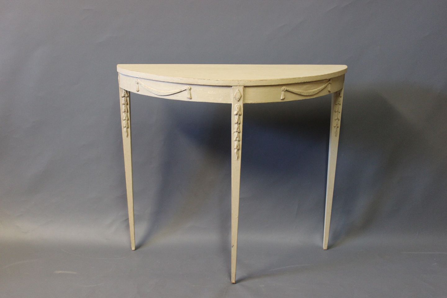 Gustavian curved console table in cream and decorated with ranks from the year 1880. Width 80 cm - Depth 28 cm and Height 72 cm