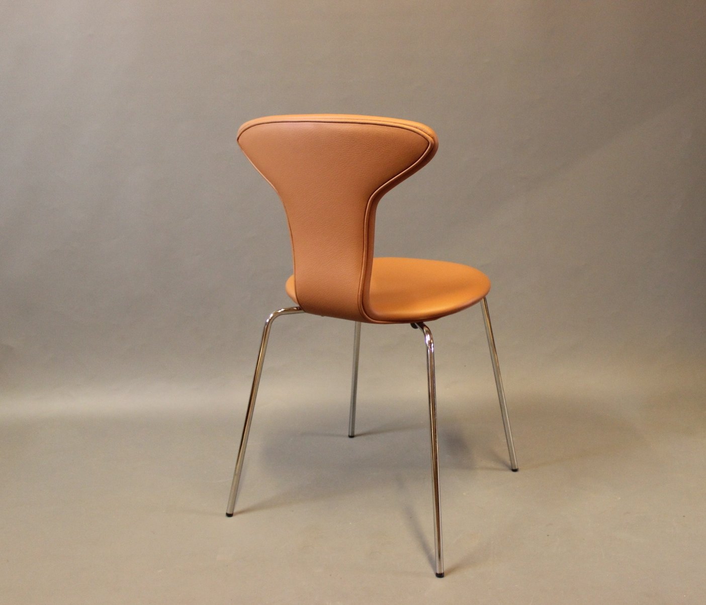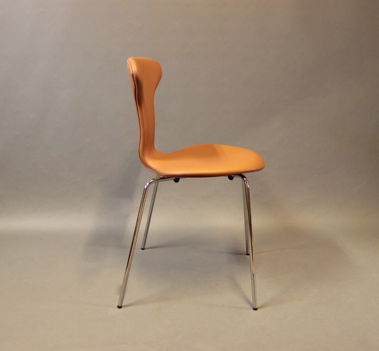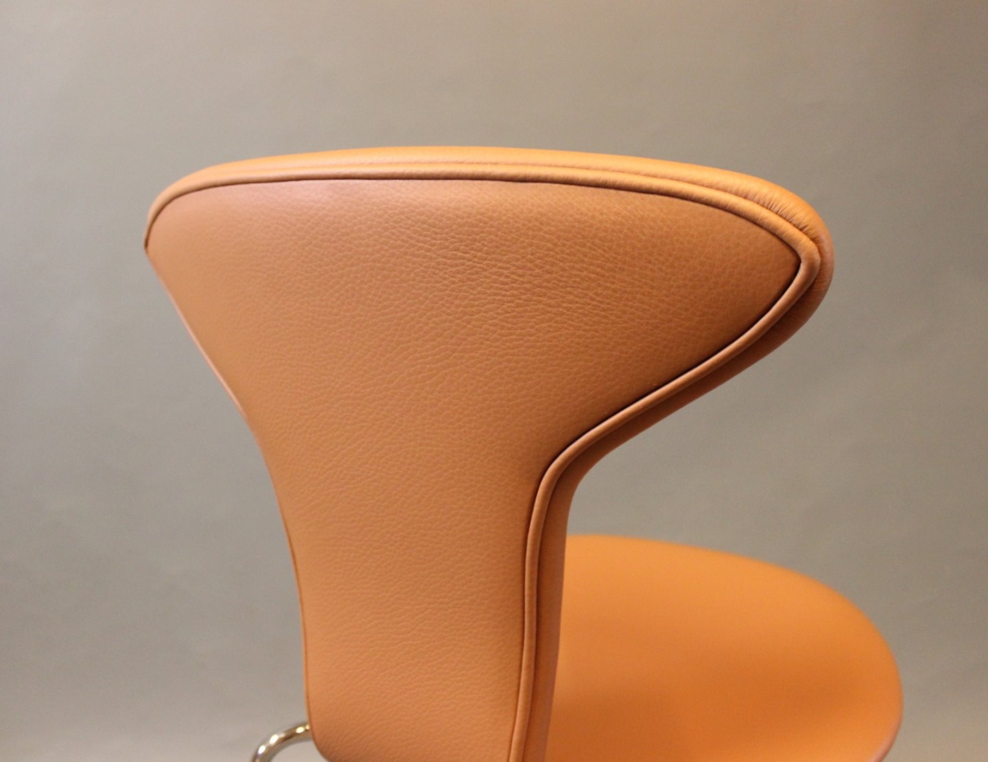 SoldA set of 6 Munkegaard chairs newly upholstered in cognac colored leather designed by Arne Jacobsen in 1955-1957 and manufactured by HOWE.