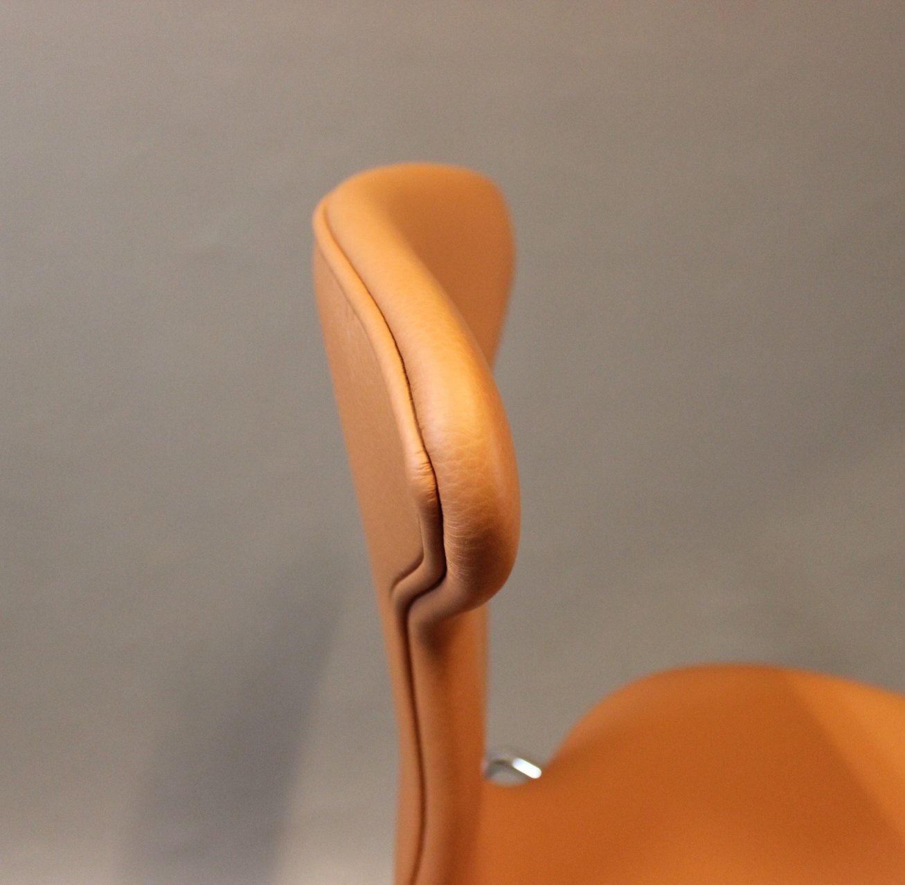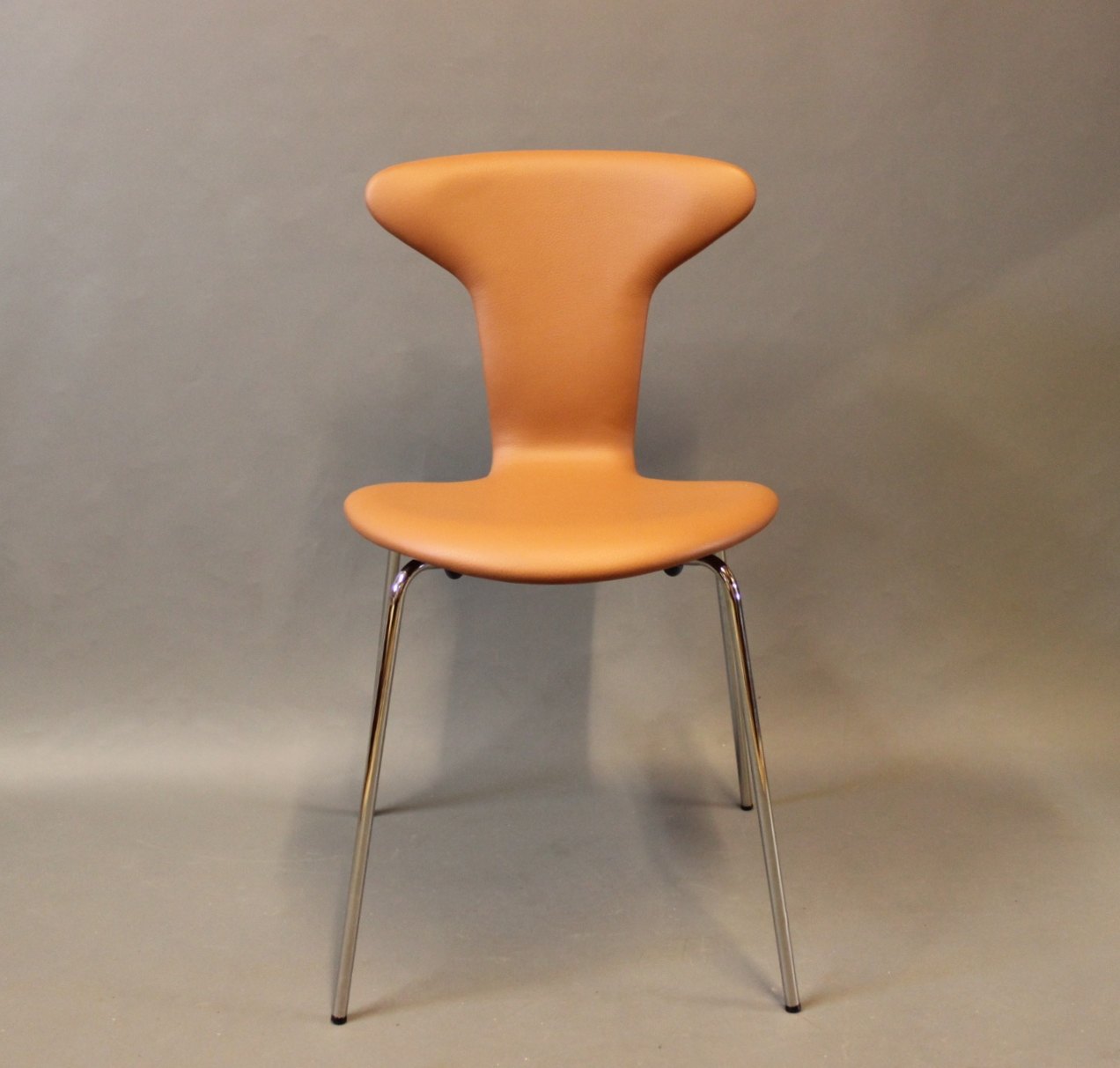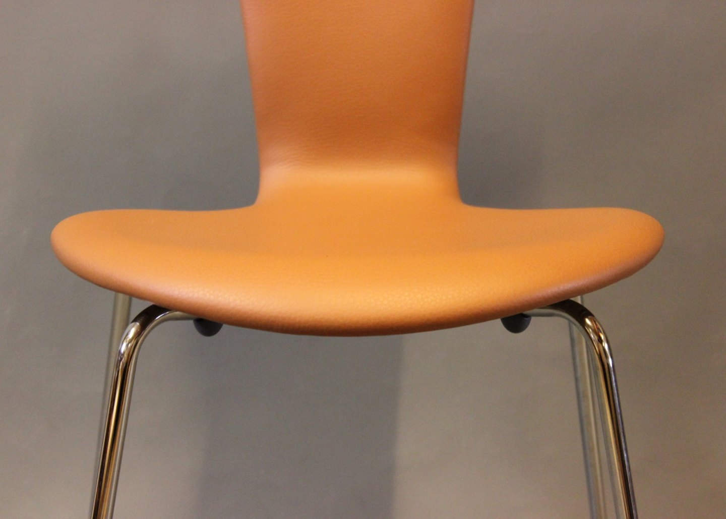 SoldA set of 6 Munkegaard chairs newly upholstered in cognac colored leather designed by Arne Jacobsen in 1955-1957 and manufactured by HOWE.