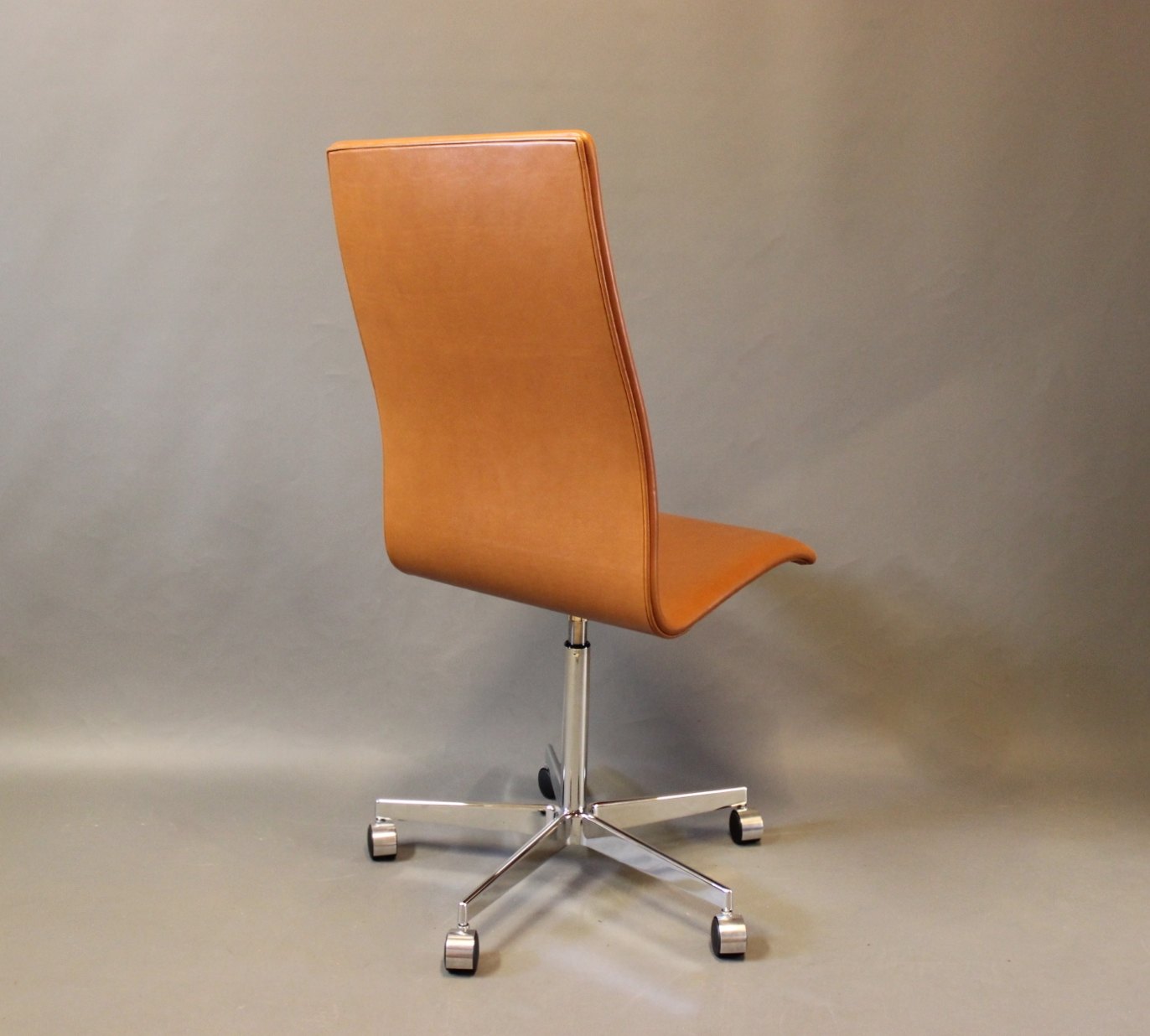 The Oxford Classic office chair, model 3193C, is an iconic example of Arne Jacobsen's remarkable contribution to modern furniture design. Designed in 1963 and produced by Fritz Hansen, this chair exudes a unique elegance and timeless appeal. With its beautiful cognac colored savannah leather upholstery and original design, the chair exudes a sense of luxury and sophistication. Arne Jacobsen's characteristic minimalist aesthetics and focus on comfort and functionality are clearly present in this chair, which forms a perfect balance between form and function. This Oxford Classic office chair will make an impressive and stylish addition to any office or home office looking for a sophisticated and comfortable seating experience.