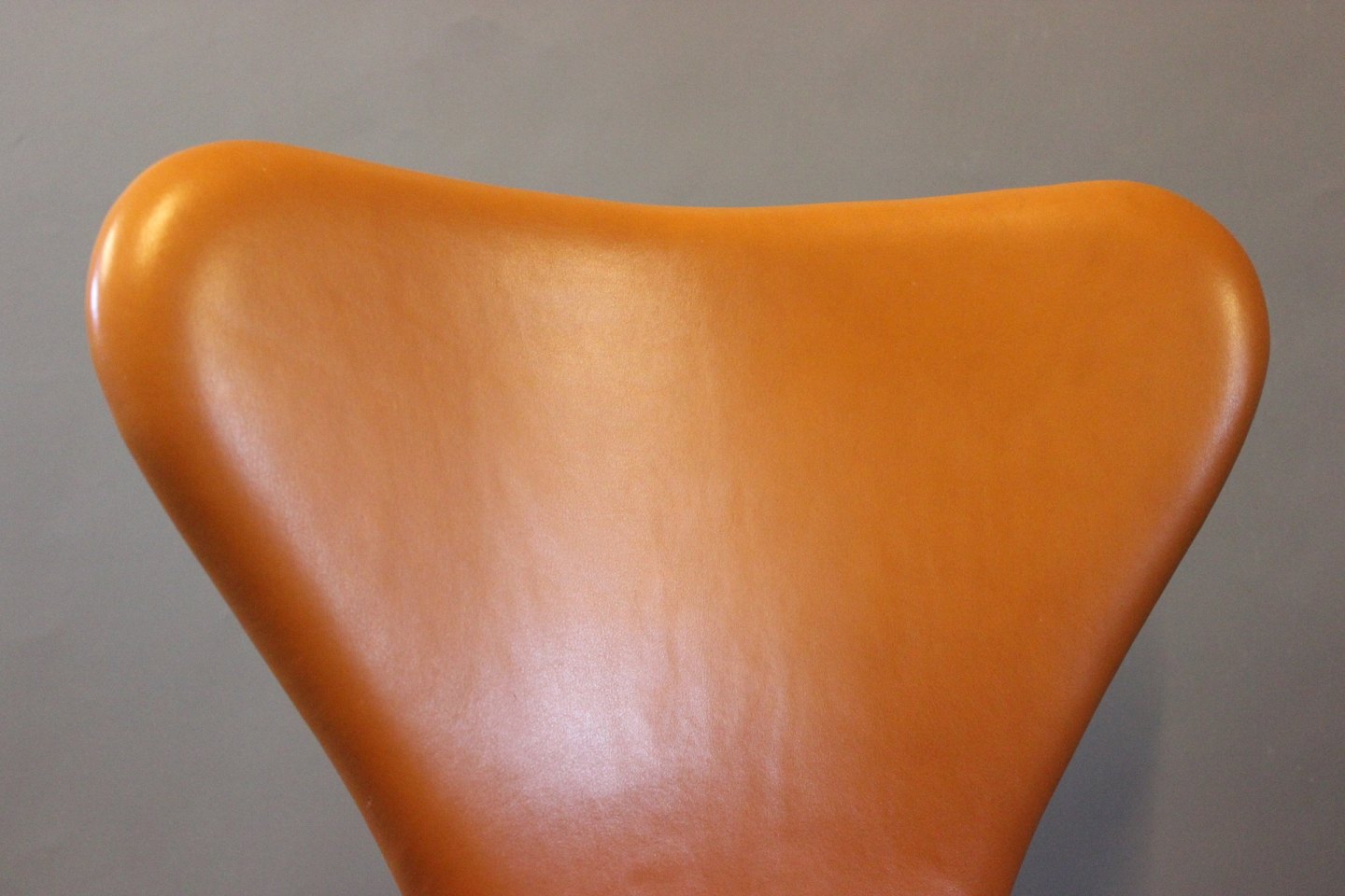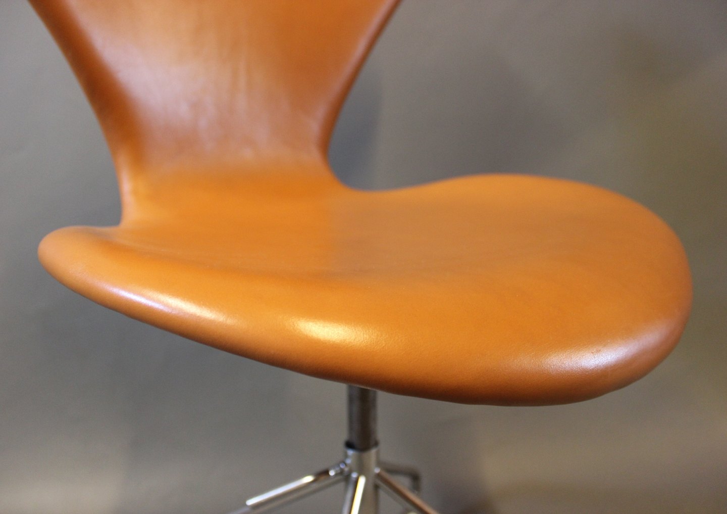 Sold"Seven" office chair, model 3117, designed by Arne Jacobsen in 1955 and manufactured by Fritz Hansen in the late 1950s. The chair has been upholstered in cognac colored elegance leather.