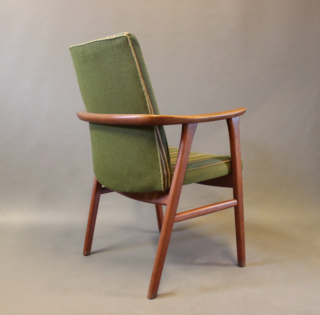 Armstol i teak og polstret i grønt stof af Dansk design fra 1960erne. Stolen er i rigtig flot brugt stand.