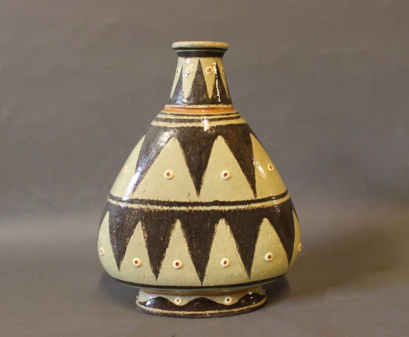 SoldVase in edged pattern in brown and light colours by Henry Clante.