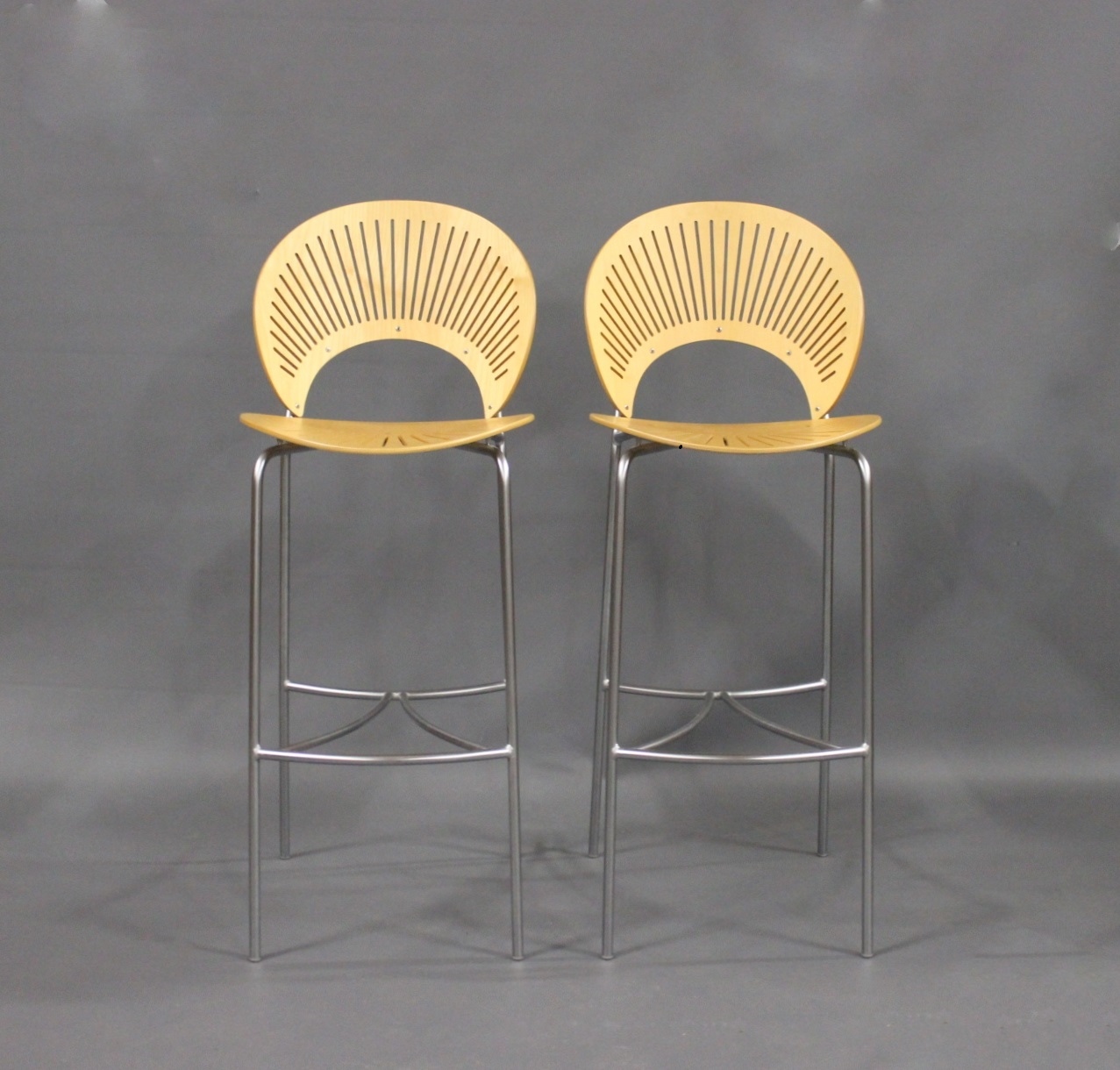 SoldA set of Trinidad stools in Birch and with frame in chrome. The stools was designed by Nanna Ditzel in 1998 and manufactured by Fredericia furniture. Model no. 3300 and serial no. 1002.