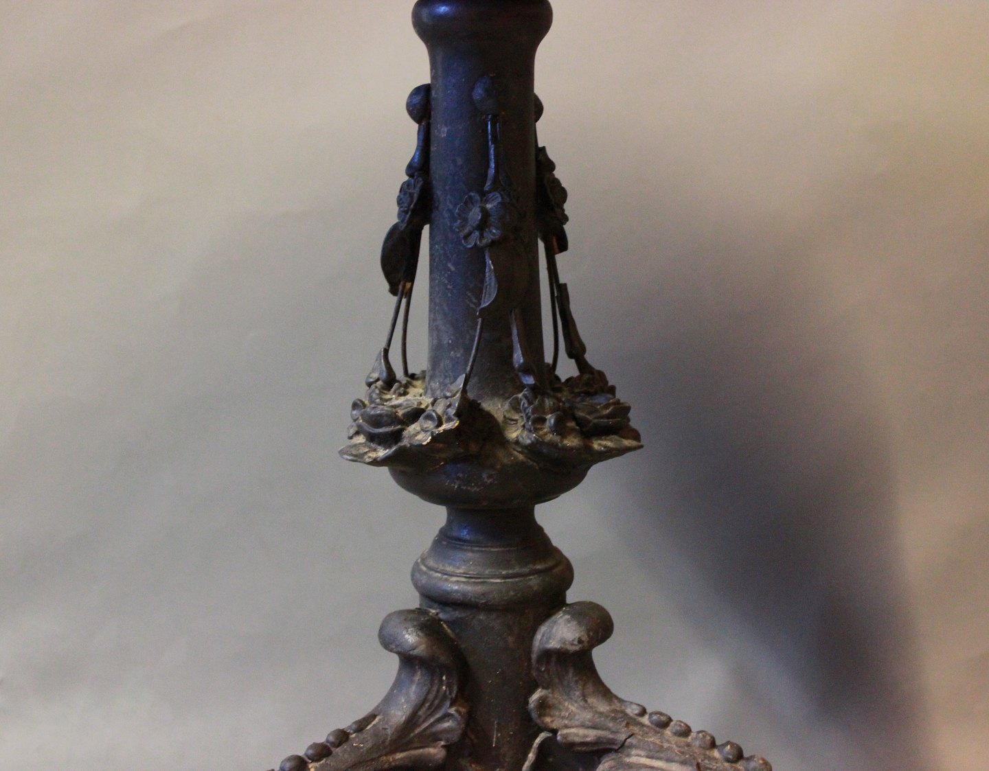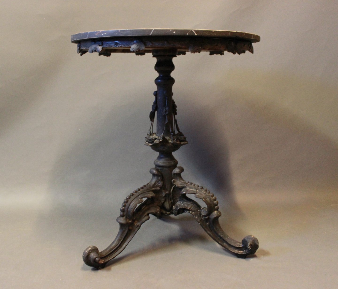 SoldRound side-/lamptable with black marbled tabletop in the style of Gustavian from around the year 1880.