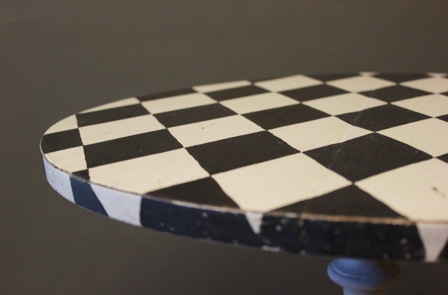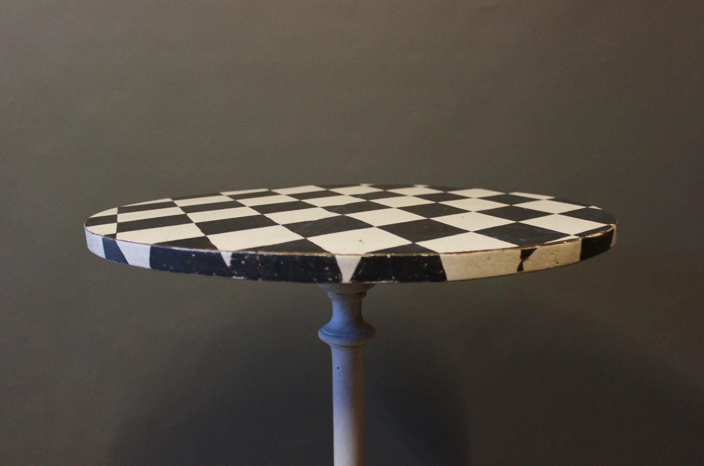 SoldGrey painted lamp-/sidetable with checkered surface in the style of Gustavian from around the year 1840.
