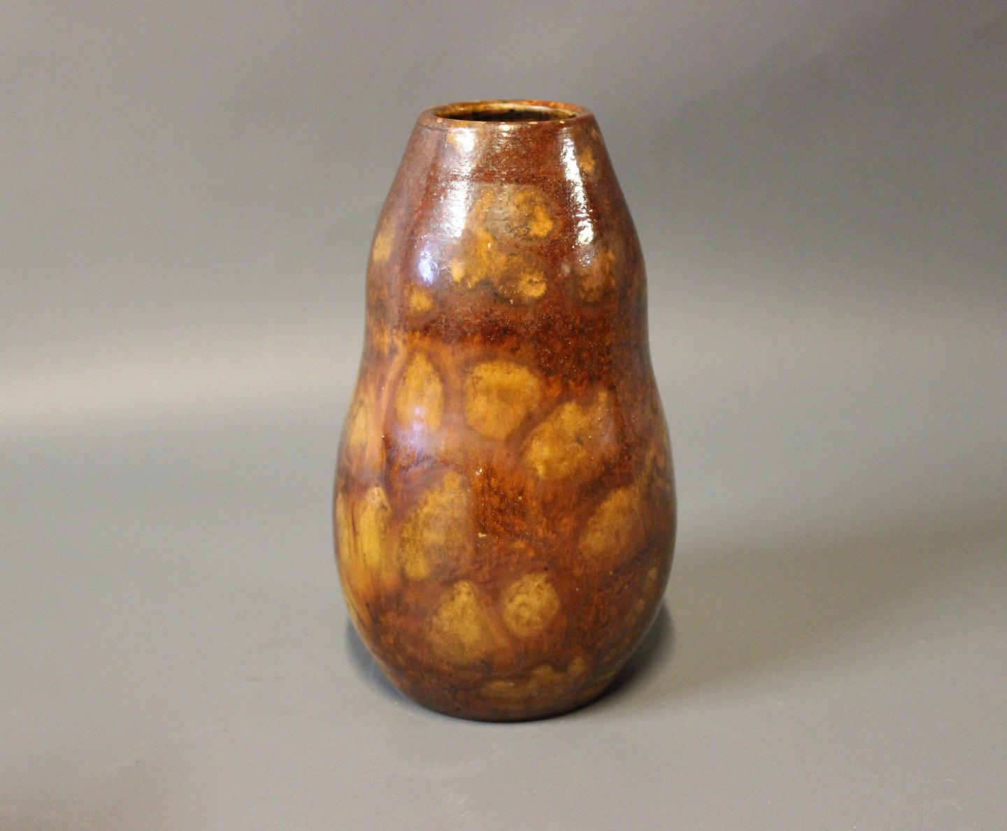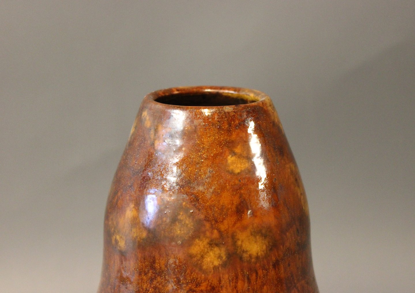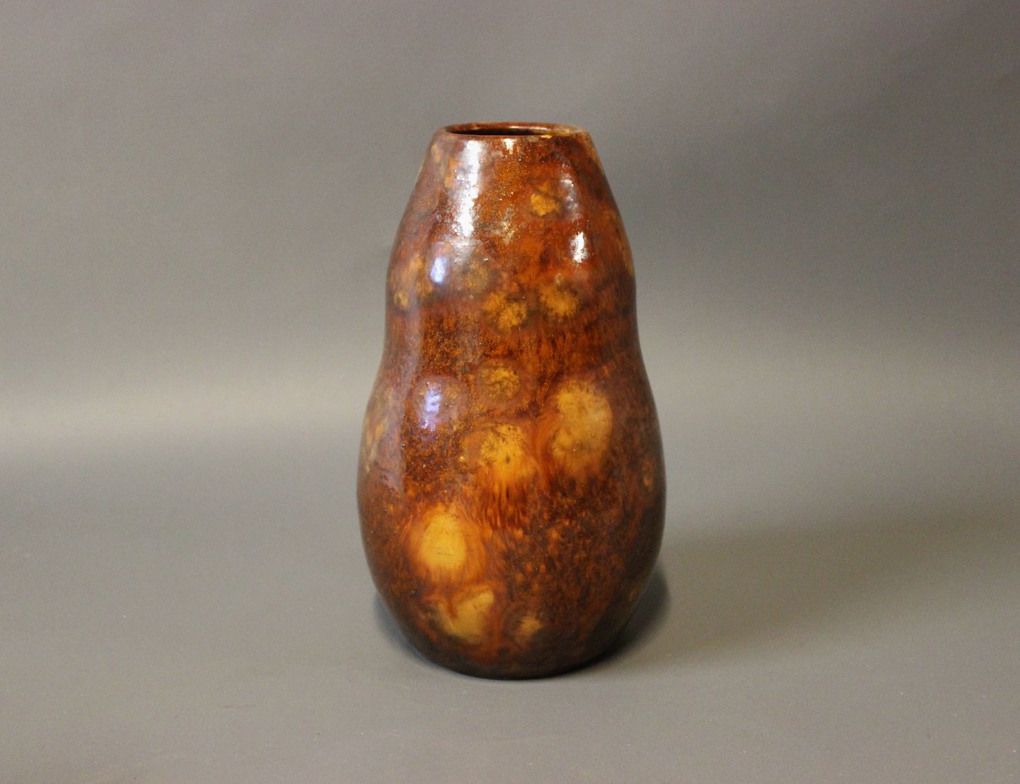 Ceramic vase in brown colors and with glitter in the glaze by an unknown artist.