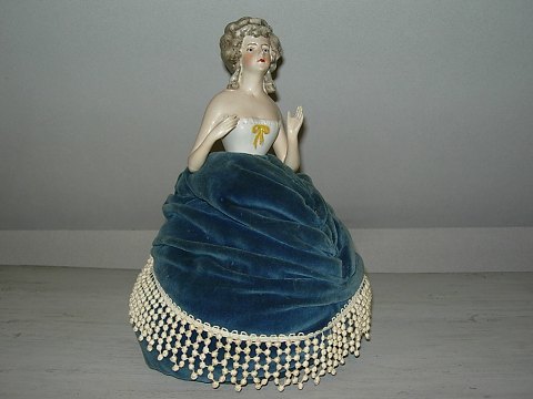 Nålepude med dame i porcelæn. I Meget fin stand.