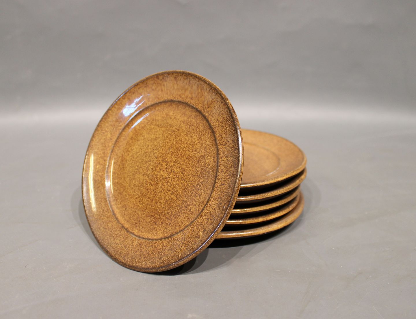 Cake plates and round dish in ceramic with a brown glaze by Viggo Kyhn. The price is for all plates and dish.