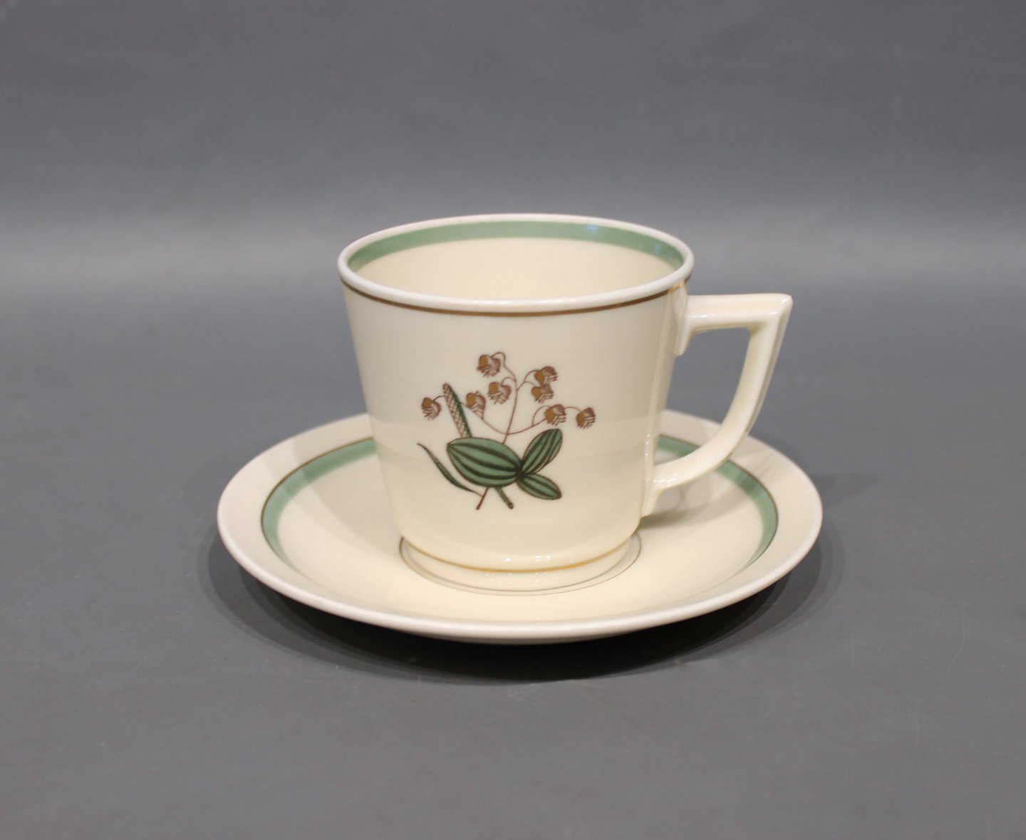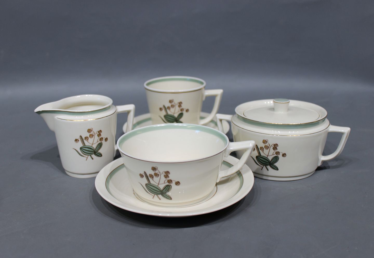 Royal porcelain Hjertegræs, coffee cup, no.: 884/9481, tea cup no.: 884/9536, cream jug no.: 884/9726 and sugar bowl no.: 884/9955.