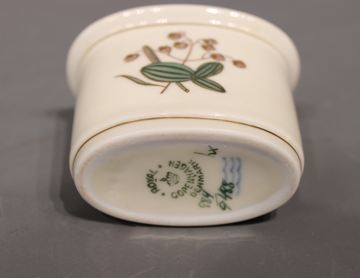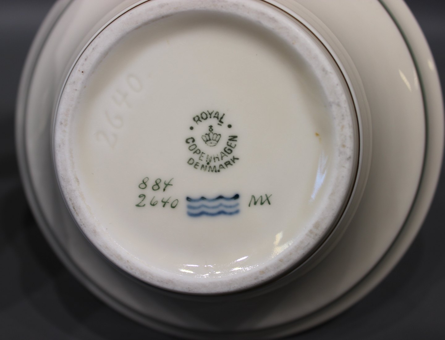 Se prisen i varebeskrivelsenKgl. porcelæn Hjertegræs skål, nr.: 884/2640 og tandstik bæger, nr.: 884/9488.