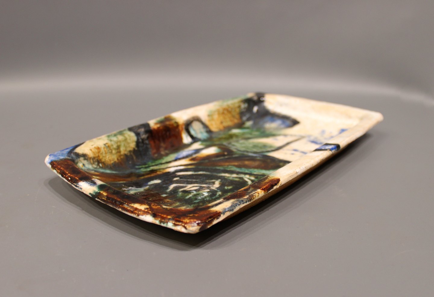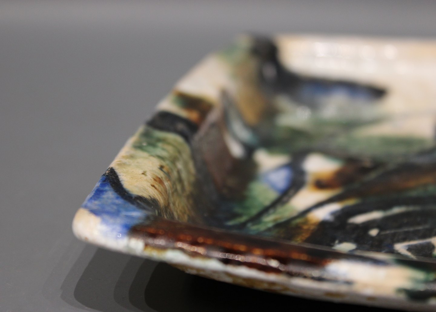 SoldCeramic dish with multicolored glaze by Jeppe Hagedorn Olsen.