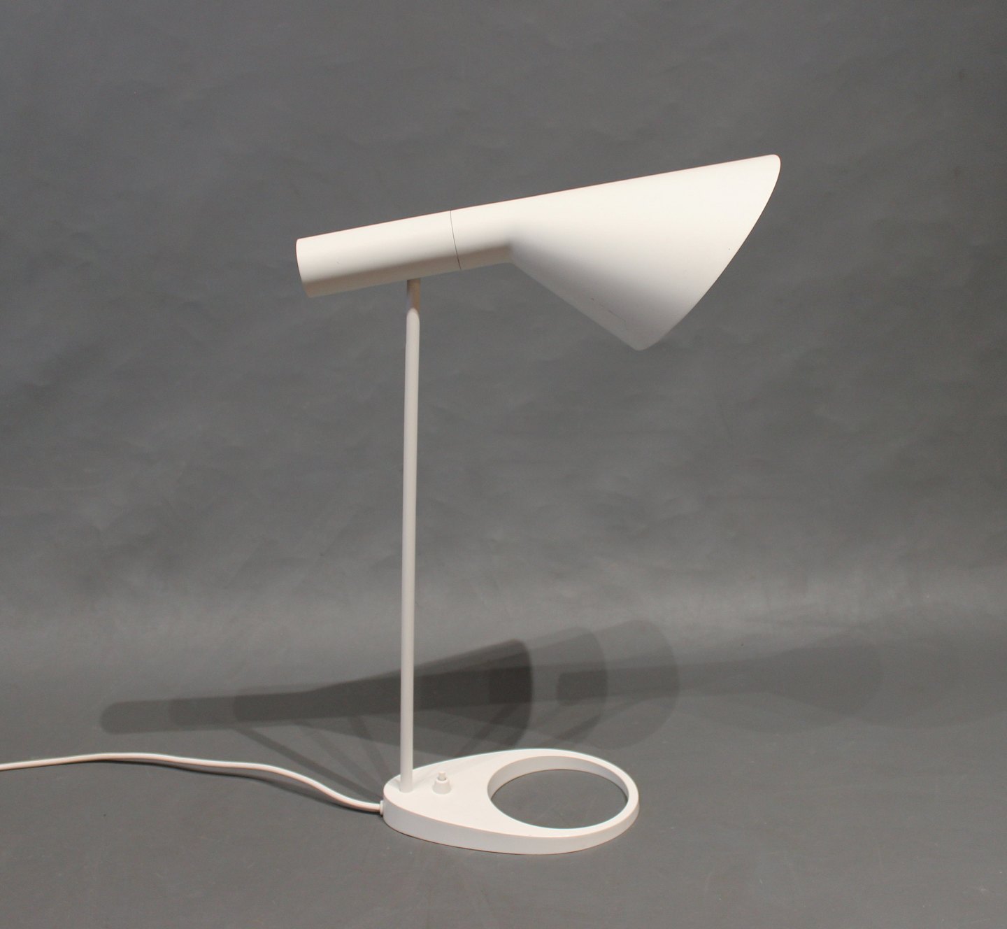 SoldArne Jacobsen, white tablelamp, designed in 1960 and manufactured by Louis Poulsen. The lamp is in great vintage condition.