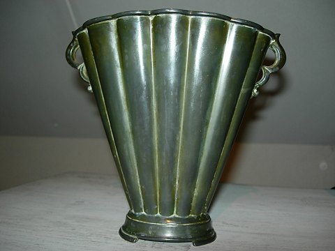 SolgtVifteformet vase med ører i disko-metal. 17 cm i højden -pris 1400 kr.