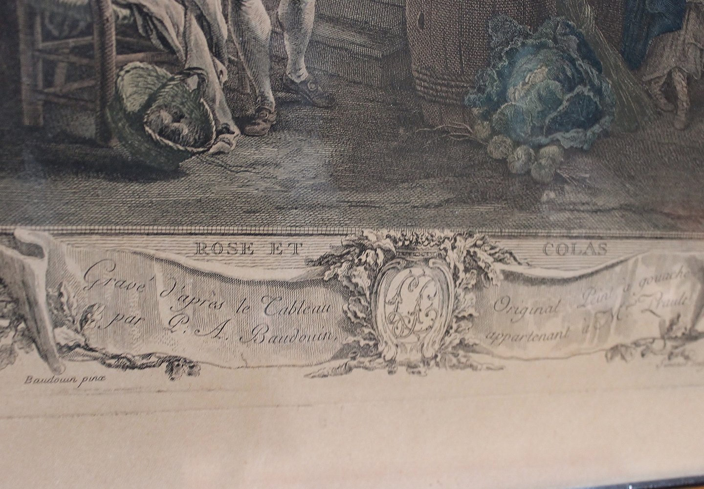 Gravering, "Rose Et Colas" af P.A. Baudouin, (1723-1769).