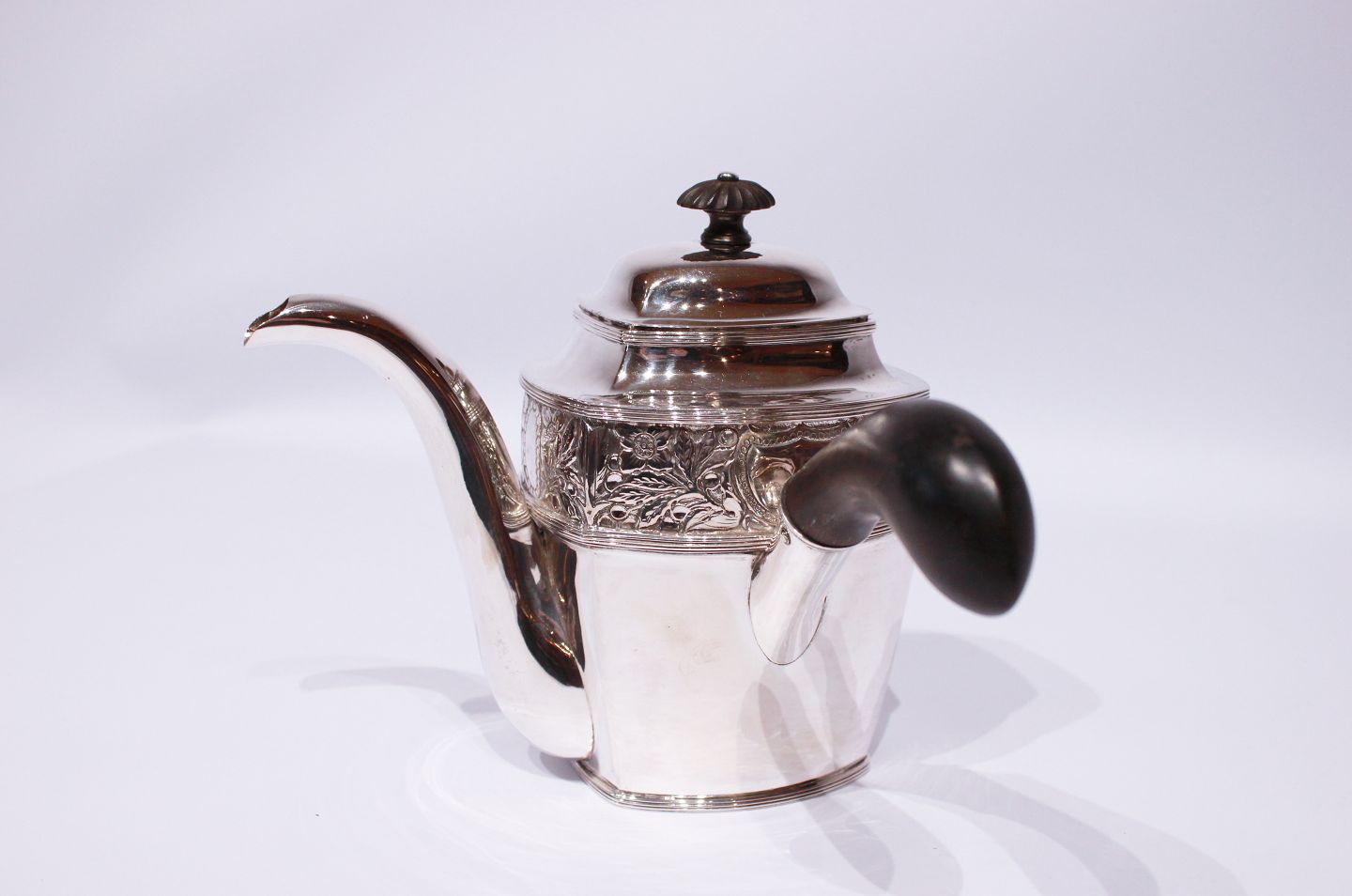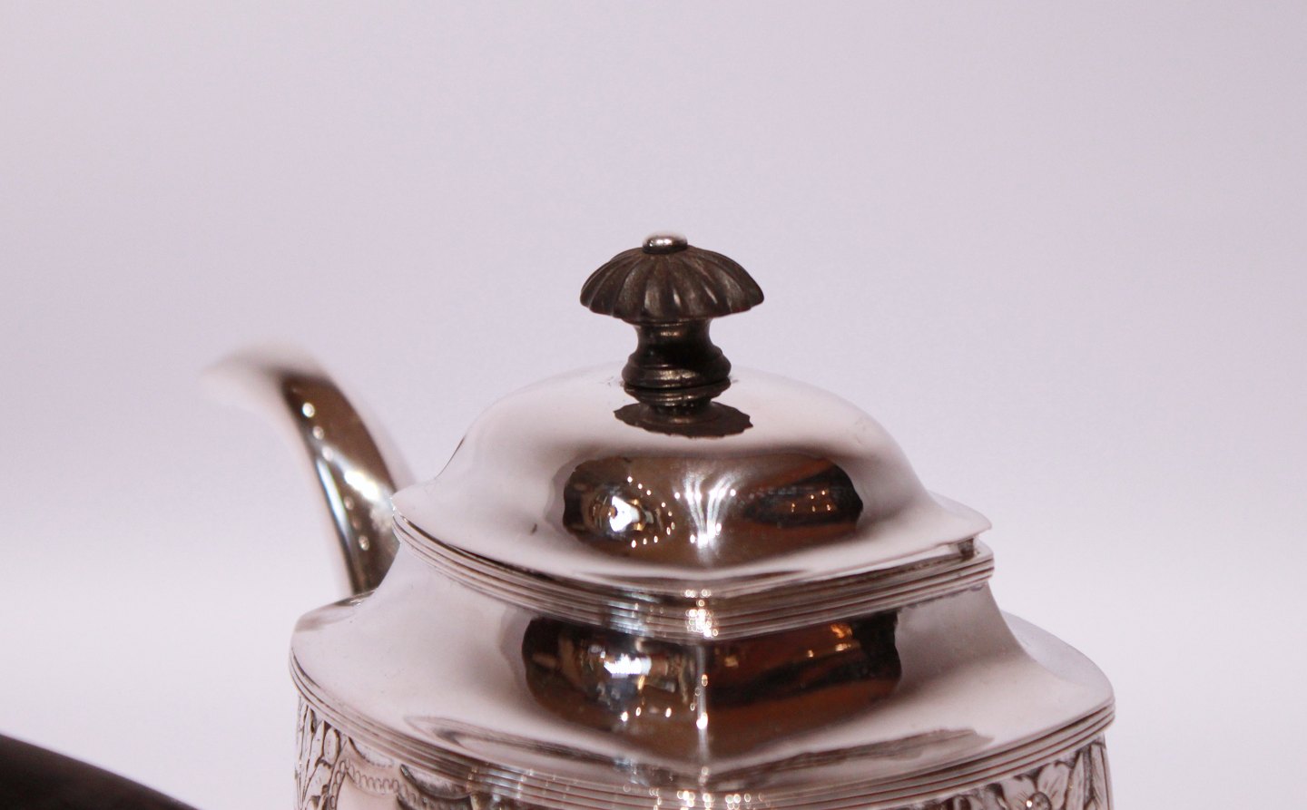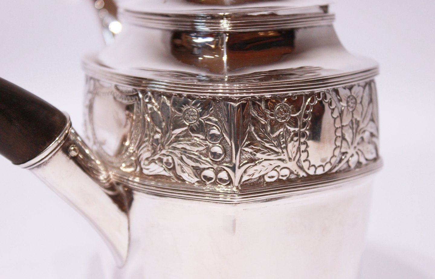Jug decorated with pattern and with ebony handle, hallmarked silver.