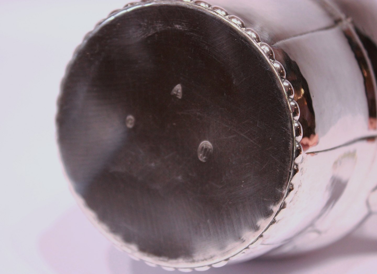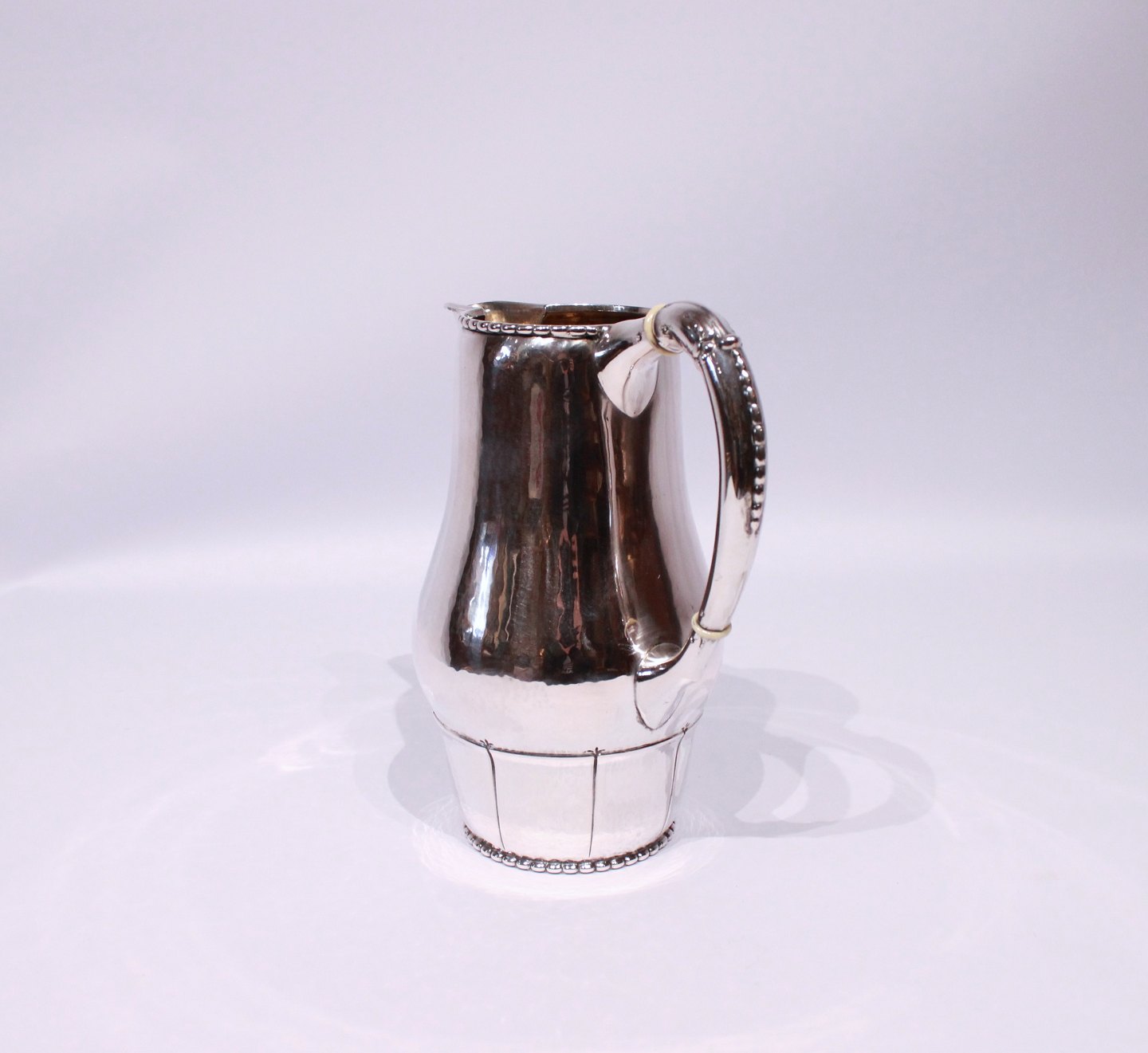 Beautiful water jug decorated with pearl edge and ivory, hallmarked silver.