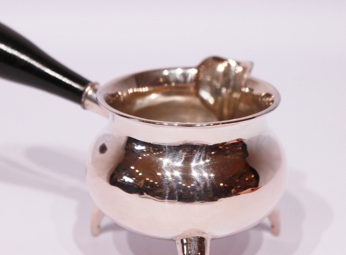 Lille sølv sovsenæb med ibenholt håndtag af guldsmed Christian Obbekjer, f1835-d1873.