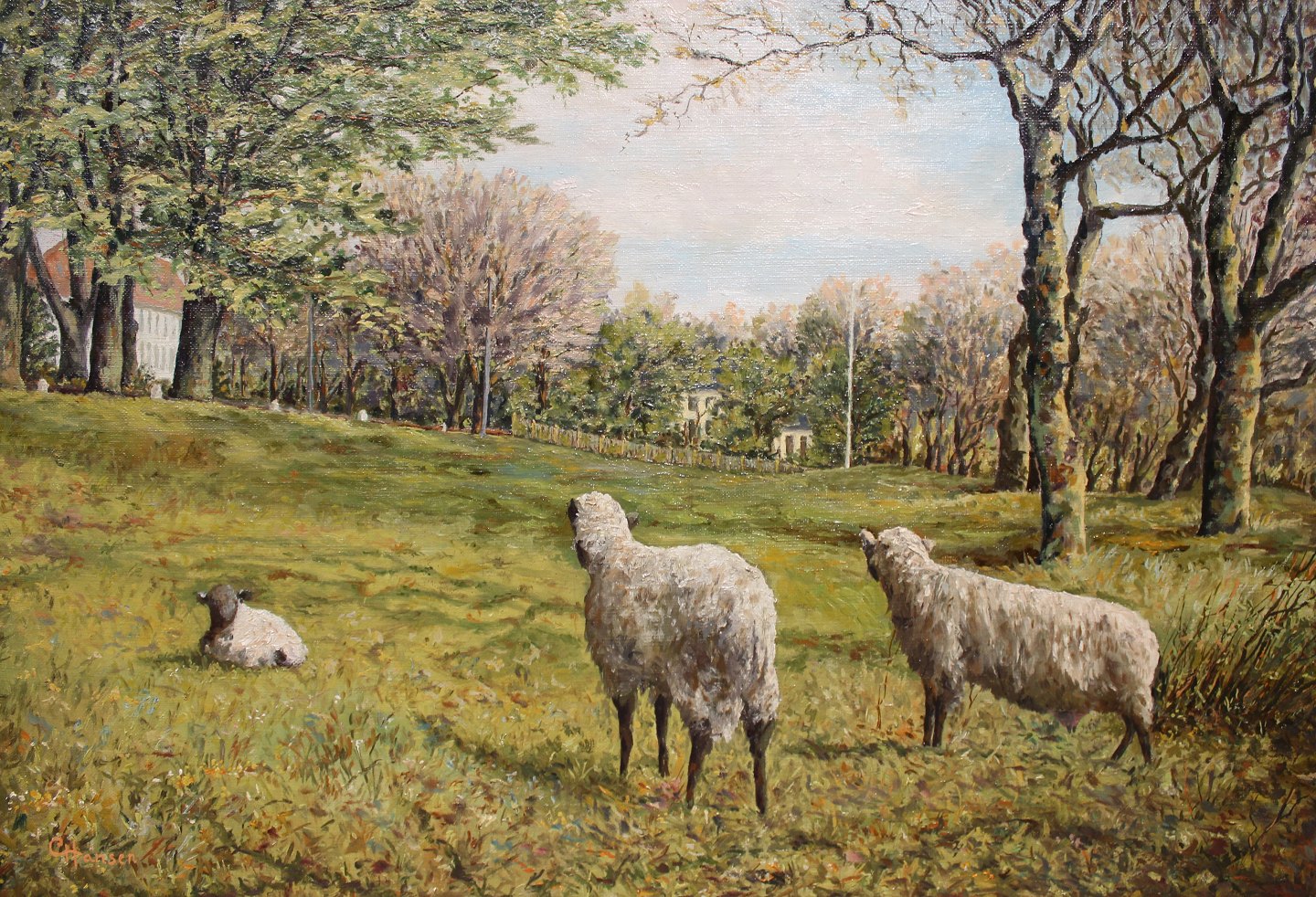 SoldOil painting with countryside motif signed C. Hansen. The painting is in great vintage condition with gilded frame.