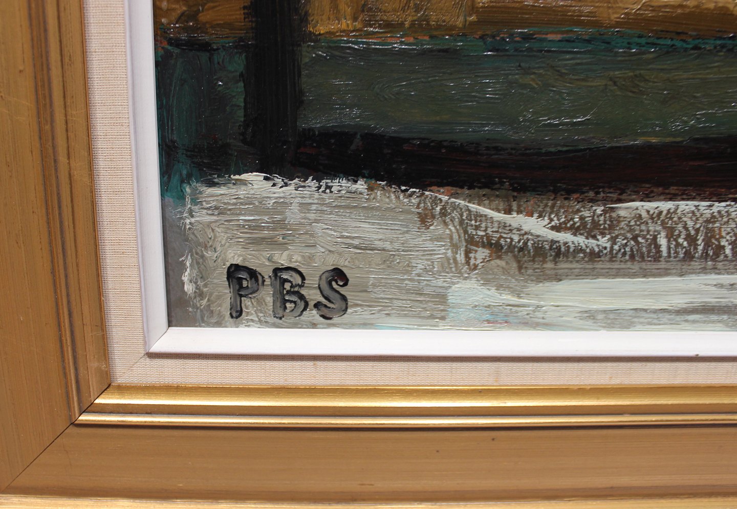 SoldOil painting in strong beautiful colors signed PBS by Peder Brøndum Sørensen. The painting is in great vintage condition with gilded frame.