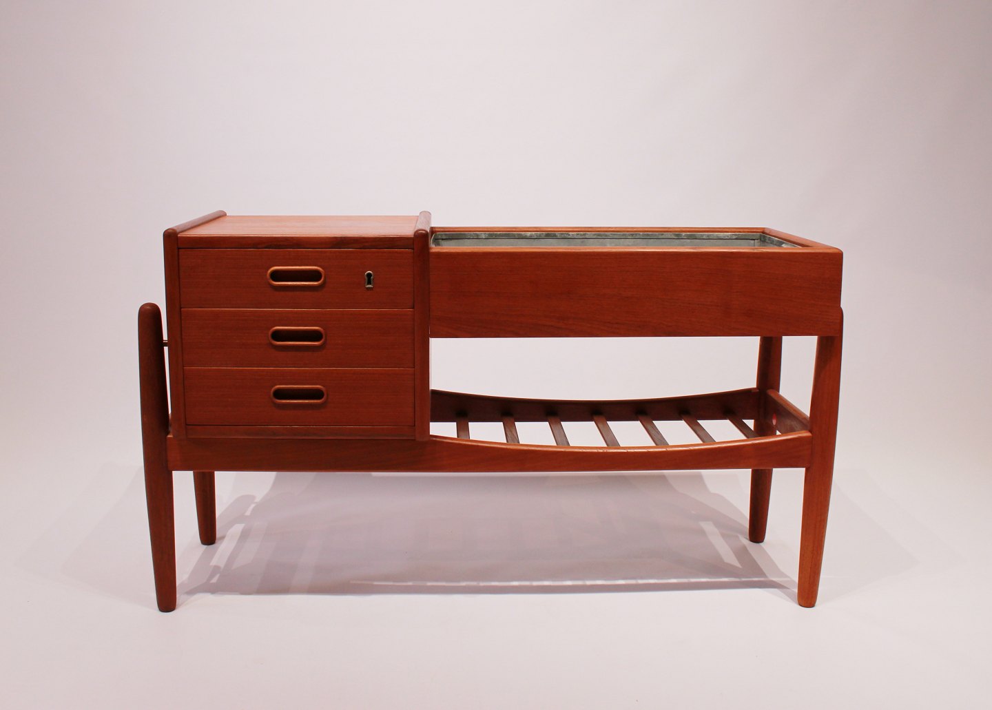 SolgtLille skænk i teak med metal skuffe designet af Arne Vodder. Skænken er af Dansk design fra 1960erne.