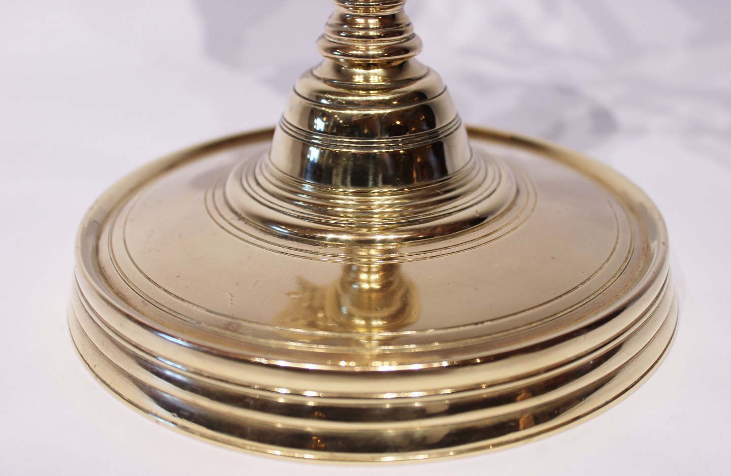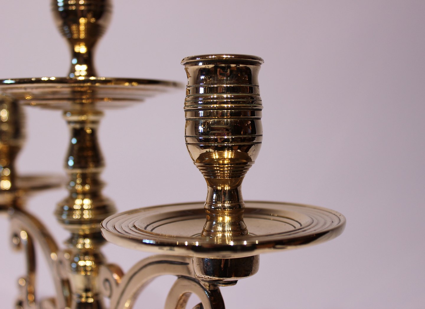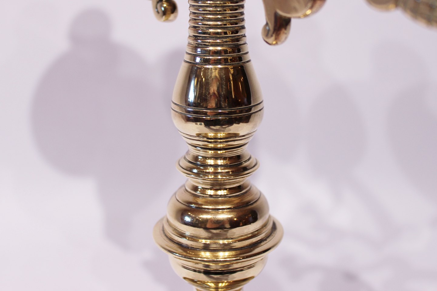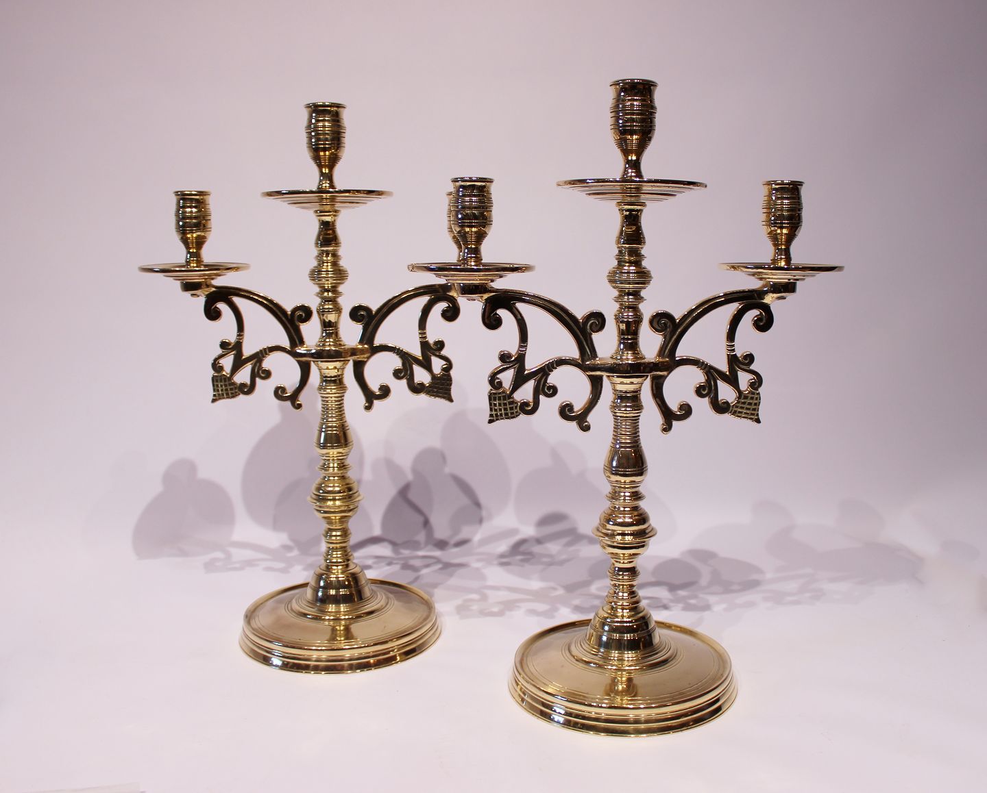 SoldA pair of large three armed brass candlesticks, in great vintage condition from around the 1890s.