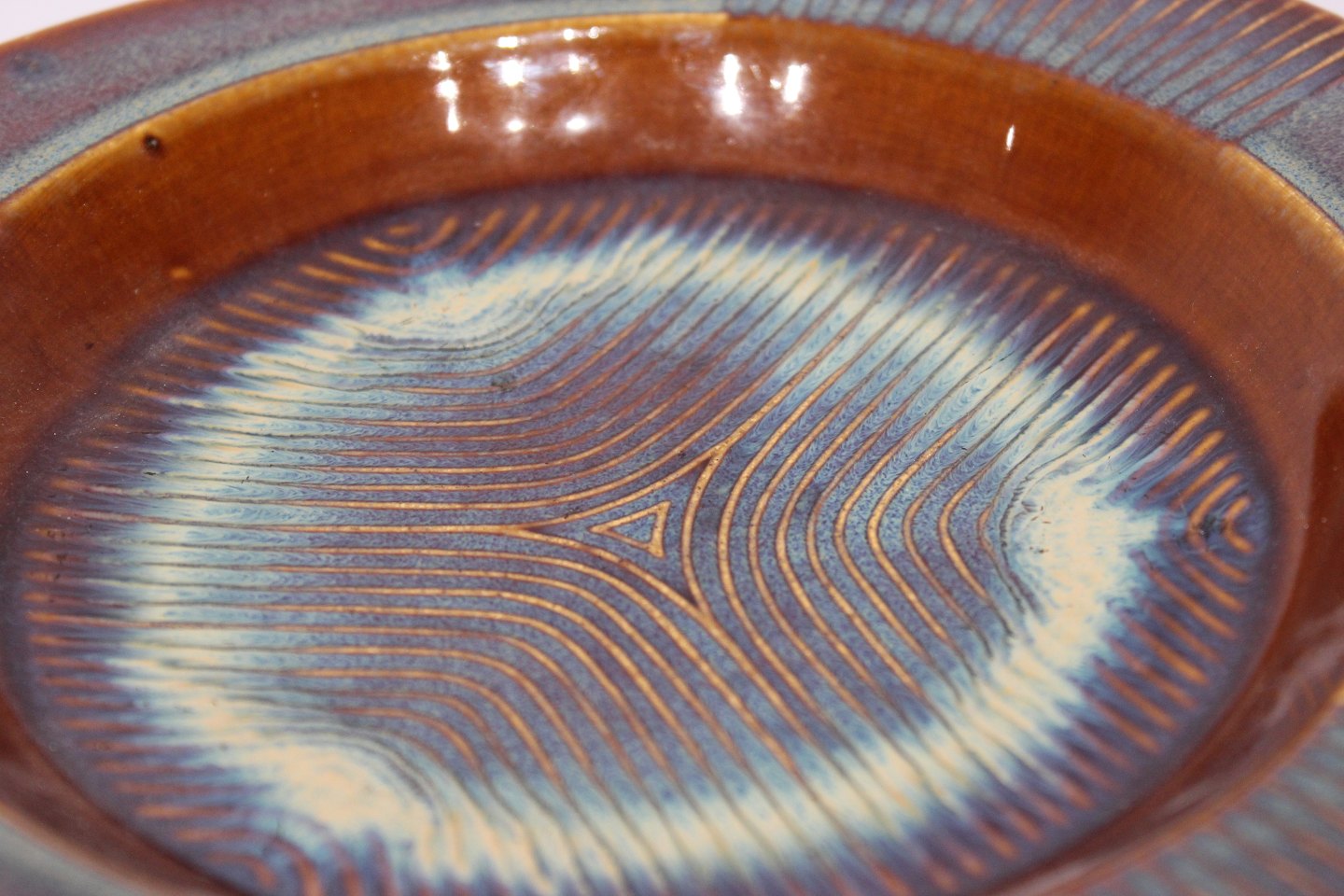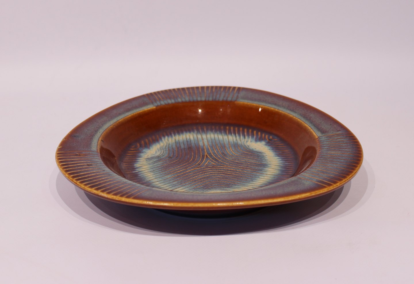 SoldCeramic dish with brown and blue glaze by Søholm, no.: 2123.