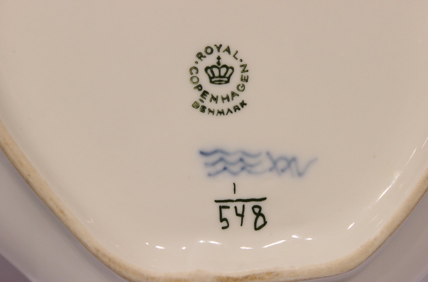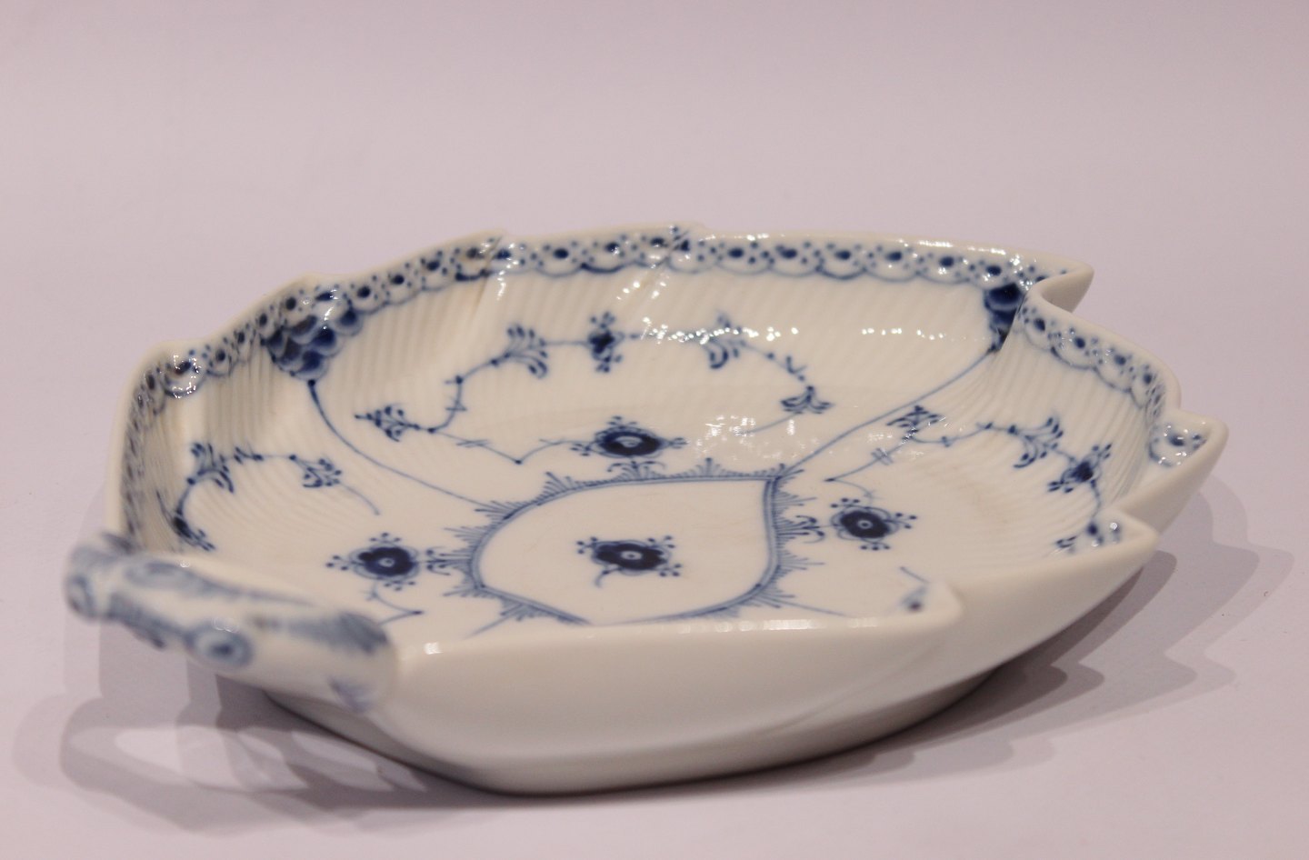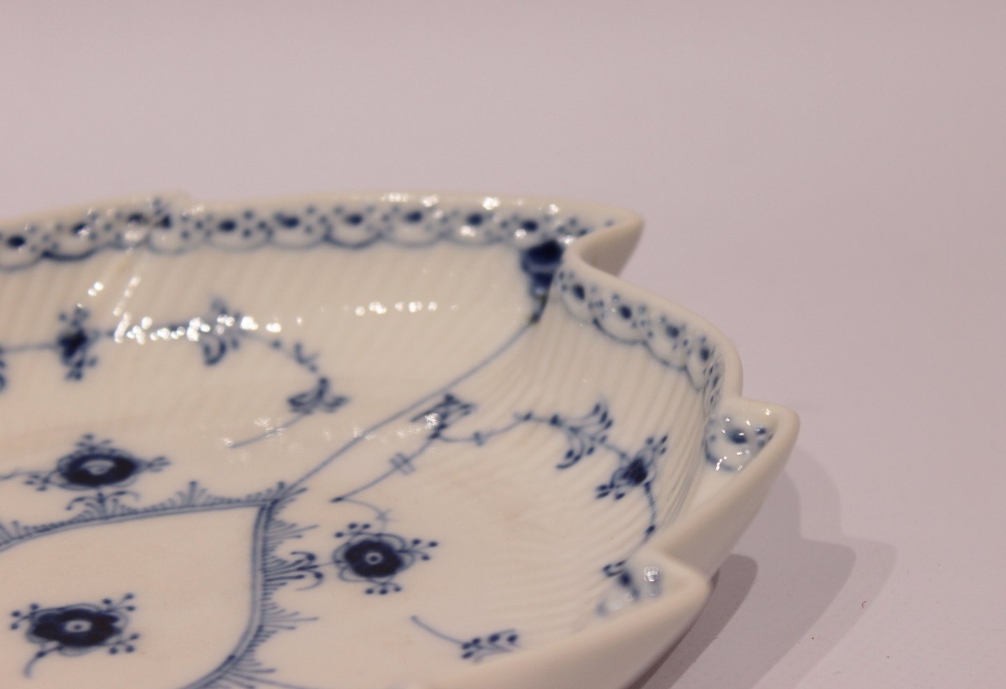 Kgl. musselmalet riflet bladformet kagefad, #1/548.